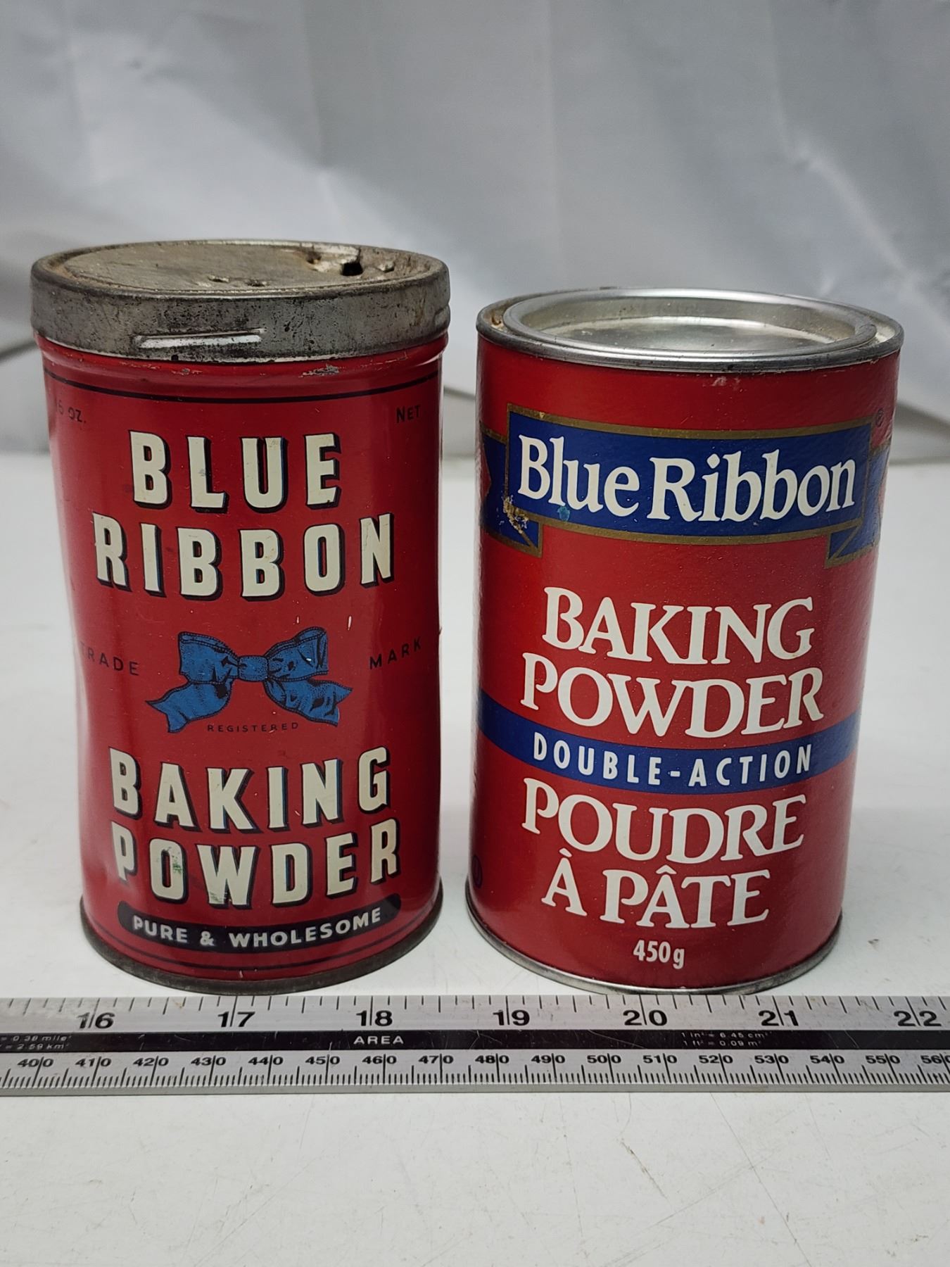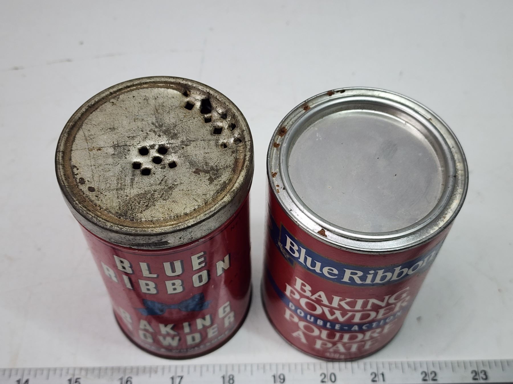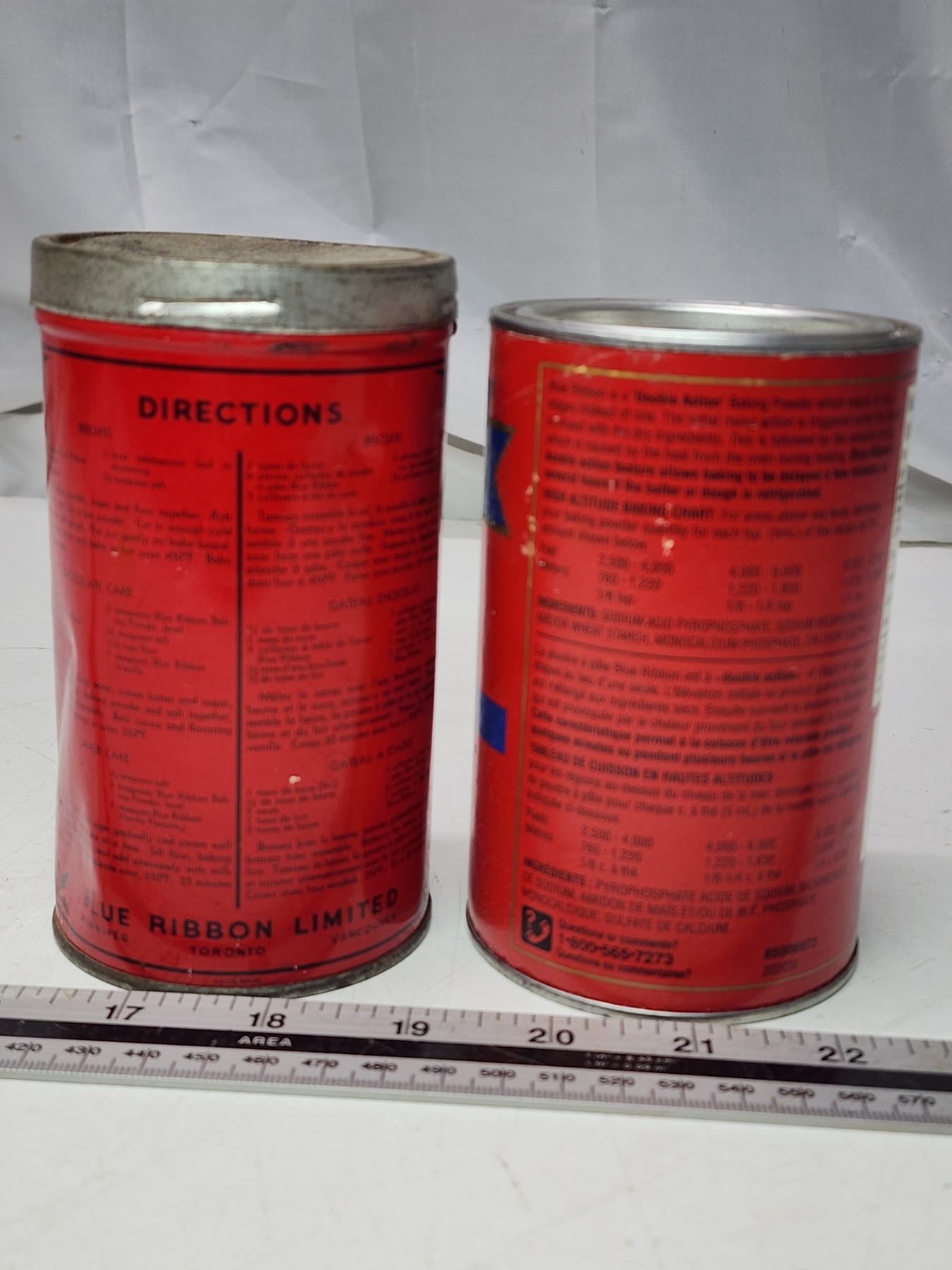 2 Vintage Blue Ribbon baking powder - 1 is half full