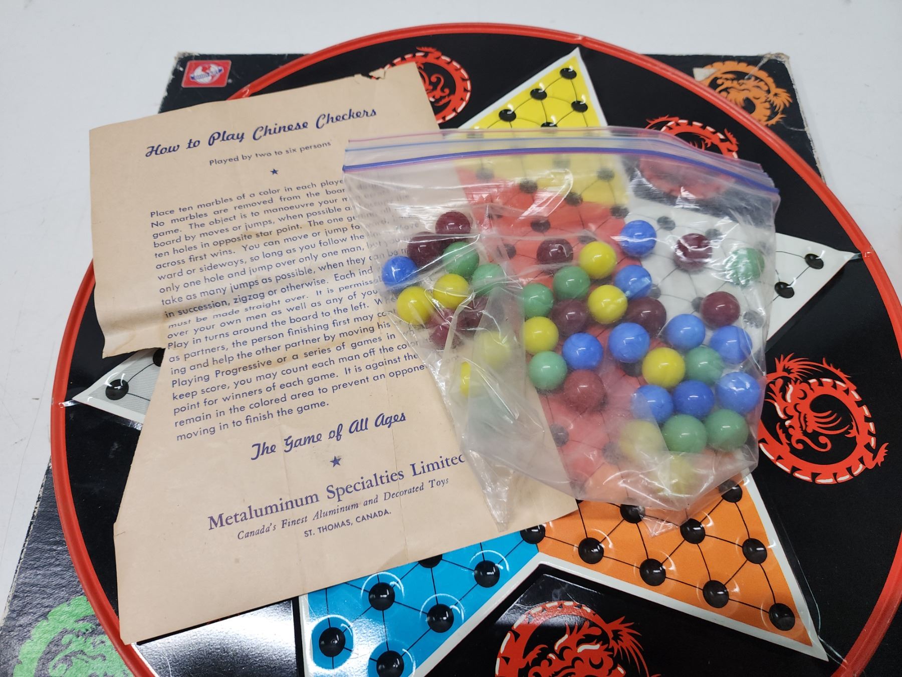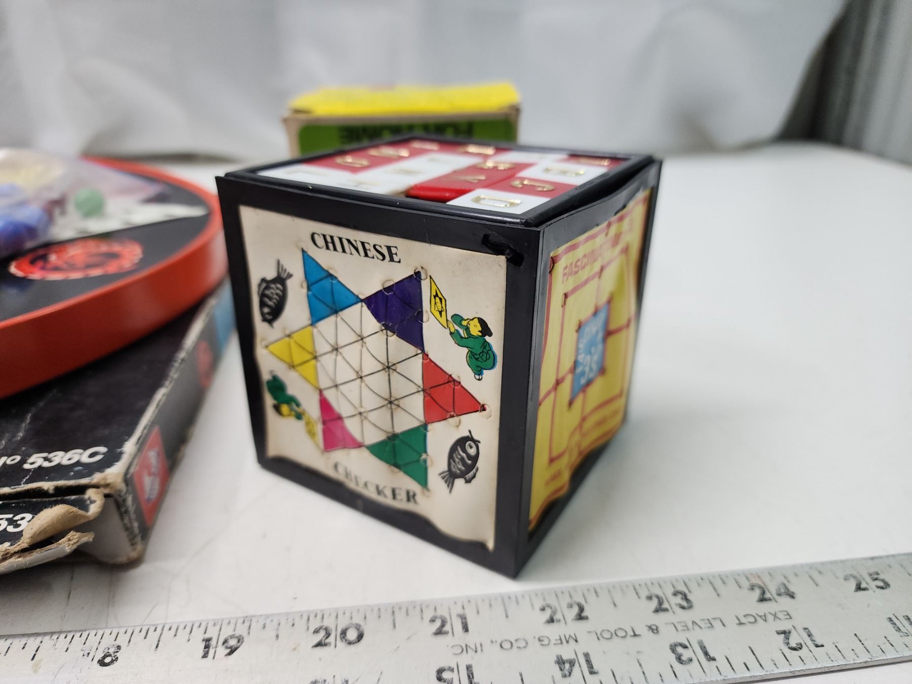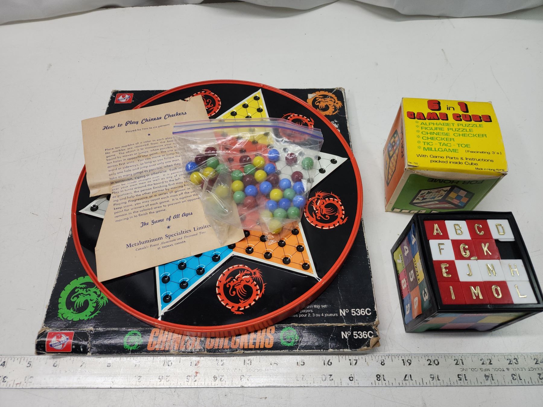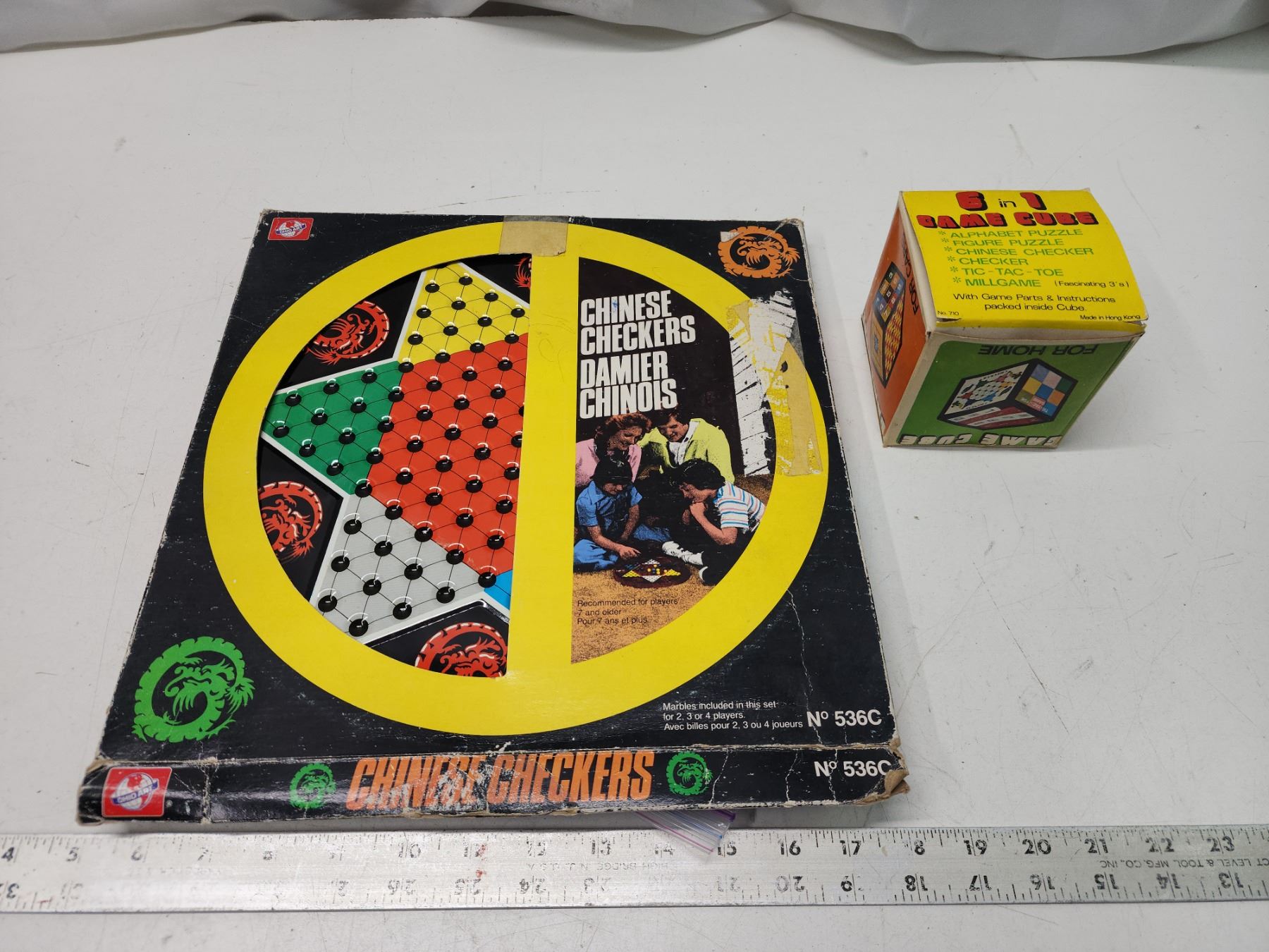 2 Vintage Board games - Chinese checkers - in box, w/ pieces & 6in1 game cube