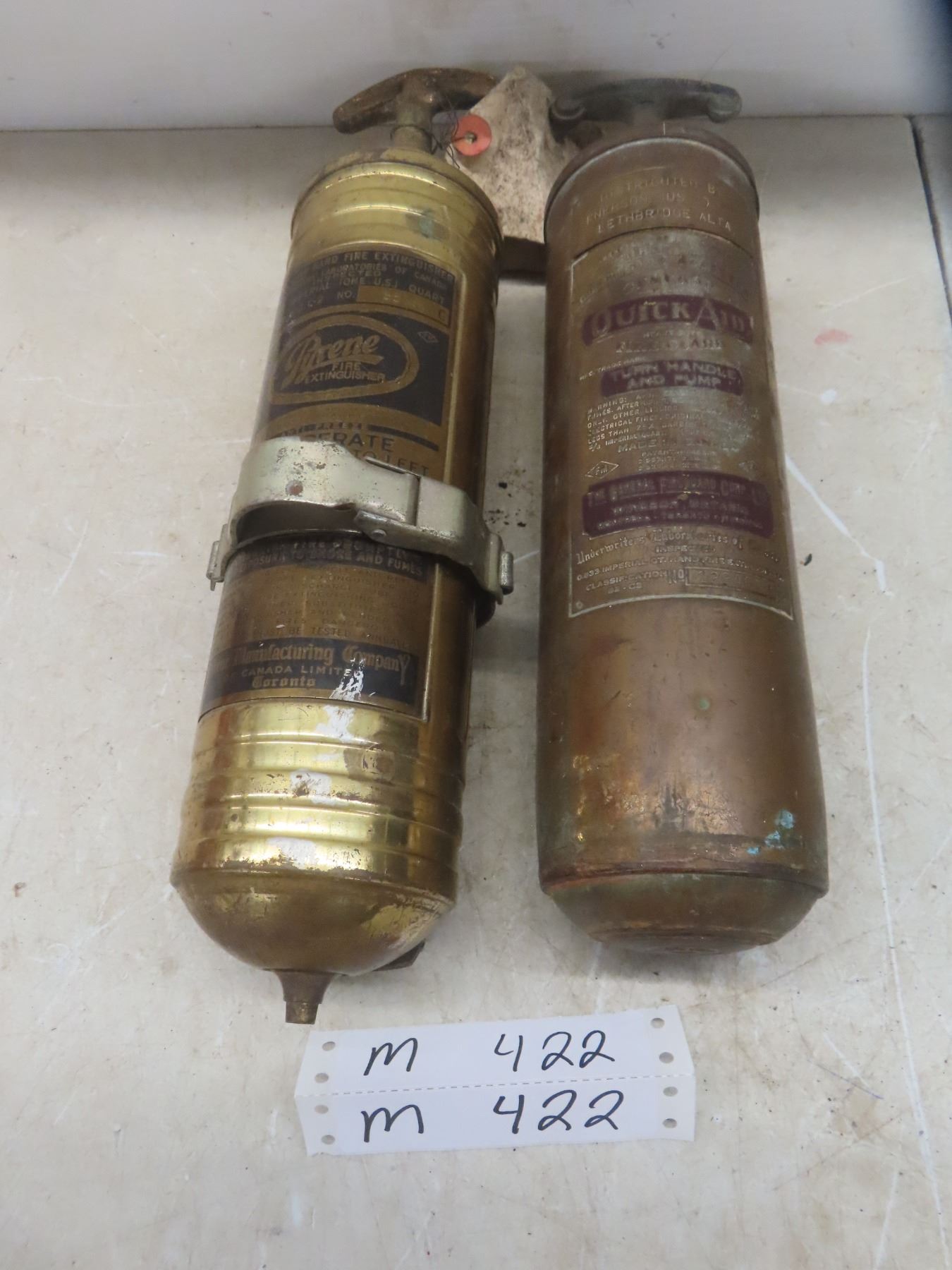 2 Vintage Brass Fire Extinguishers