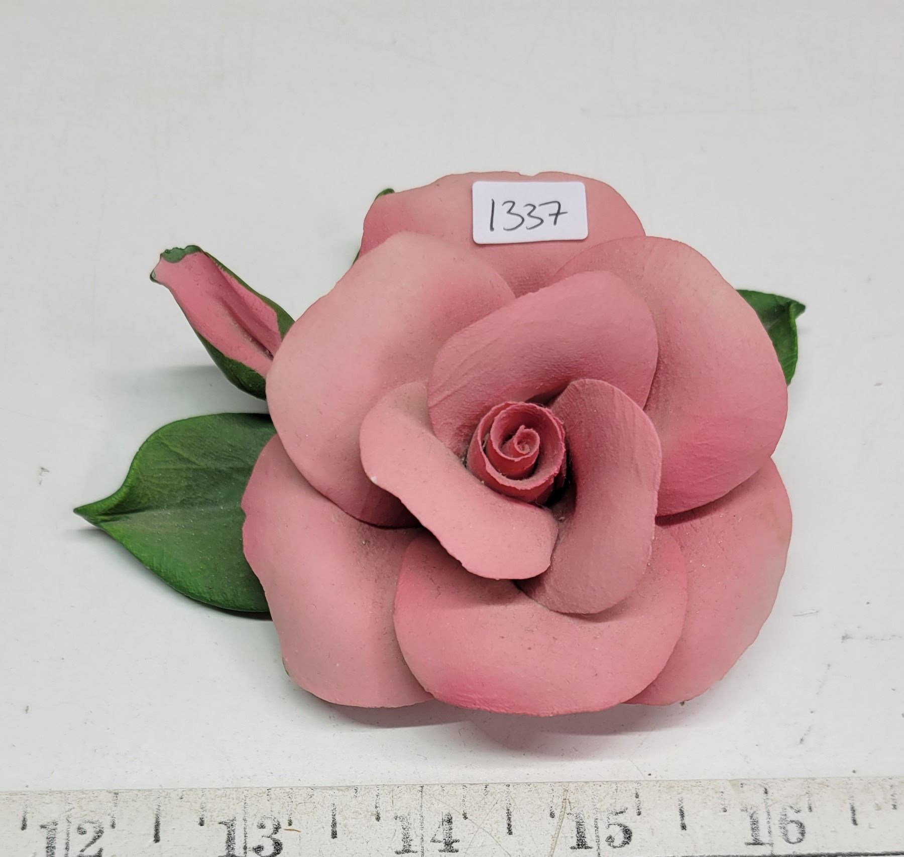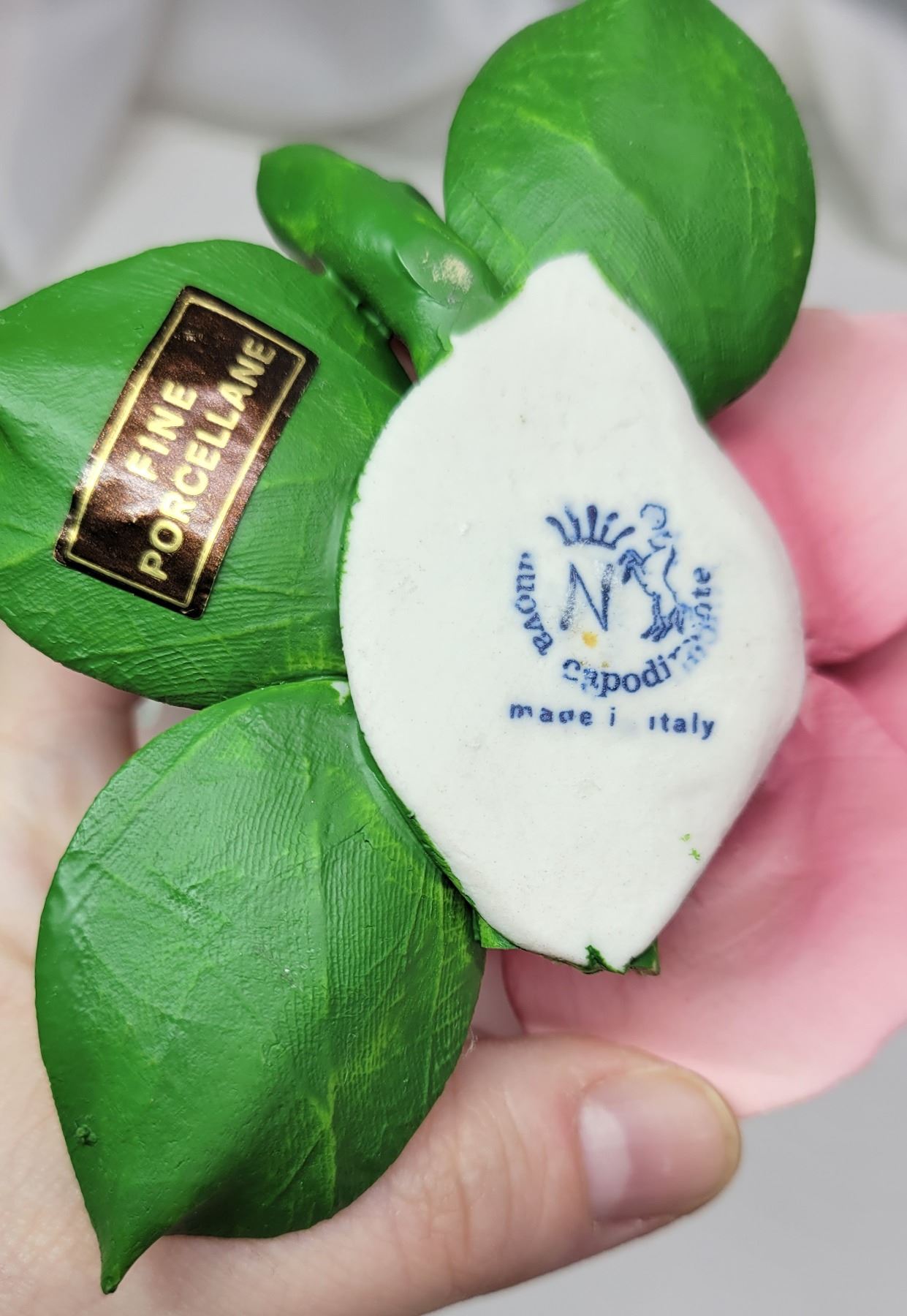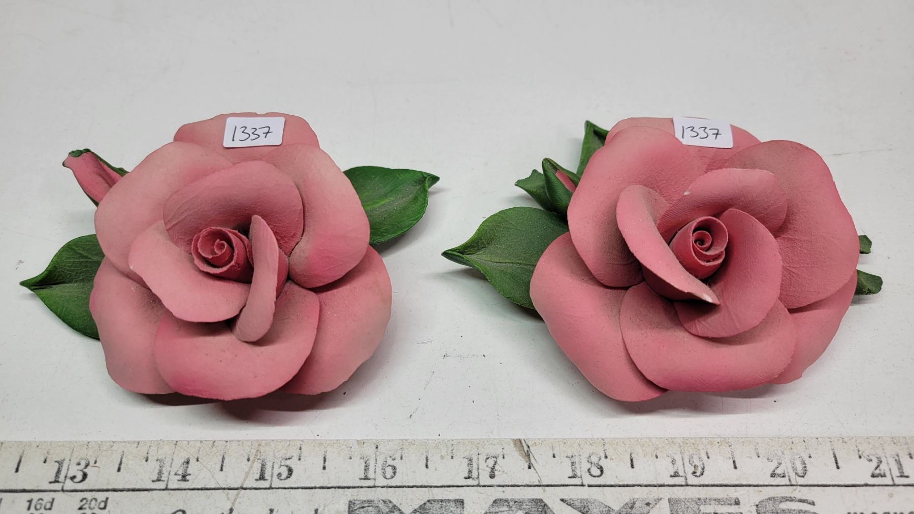 2 Vintage Capodimonte Rose Sculptures Made in Italy - Some Repair, one leaf missing
