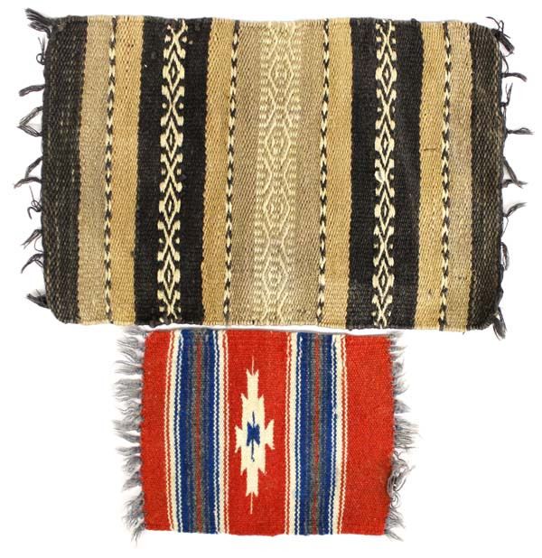 2 Vintage Chimayo Wool Textile Samplers, largest measures 18''L, fringed ends