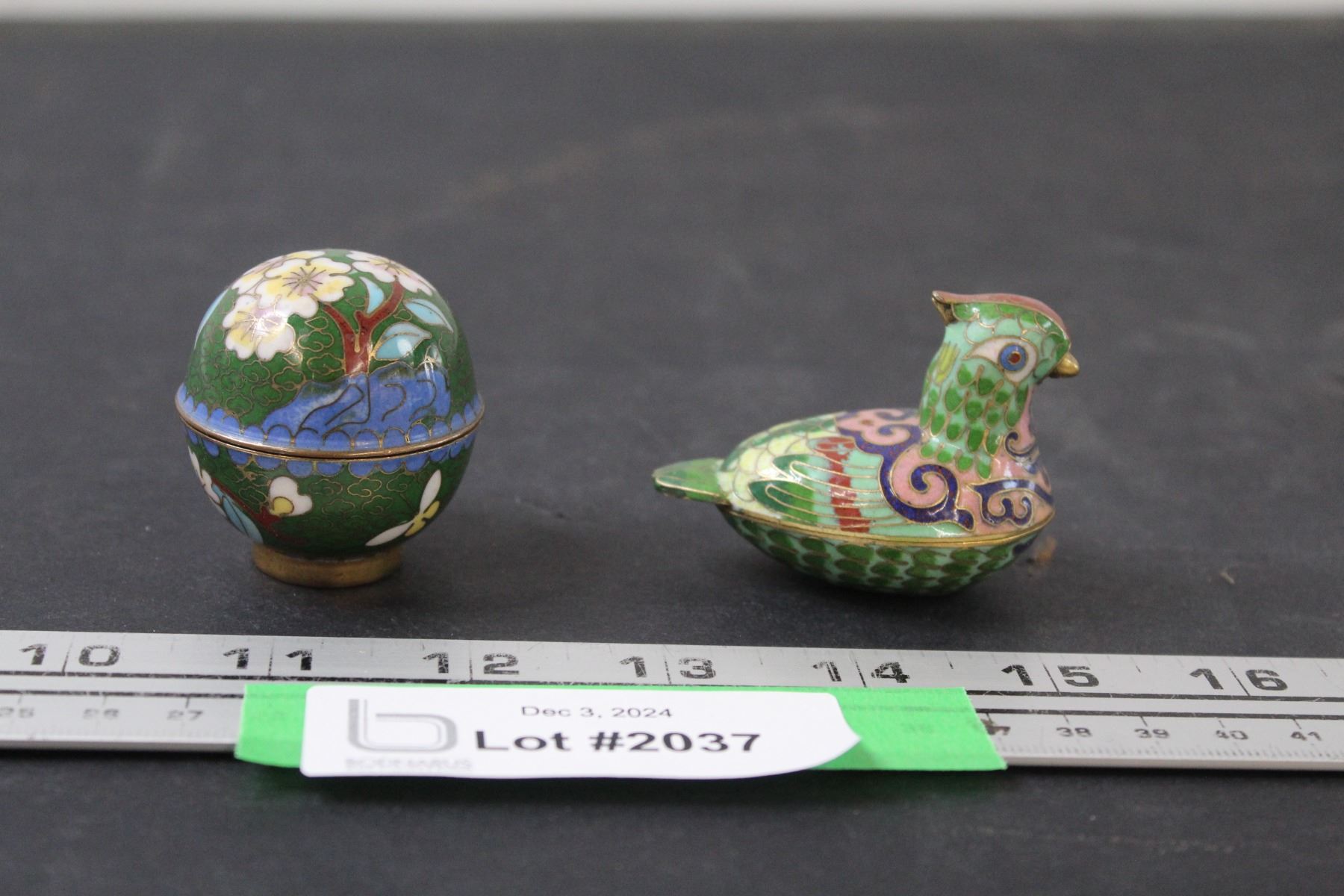 (2) Vintage Chinese Cloisonne Containers - 1.5" & 1.75"