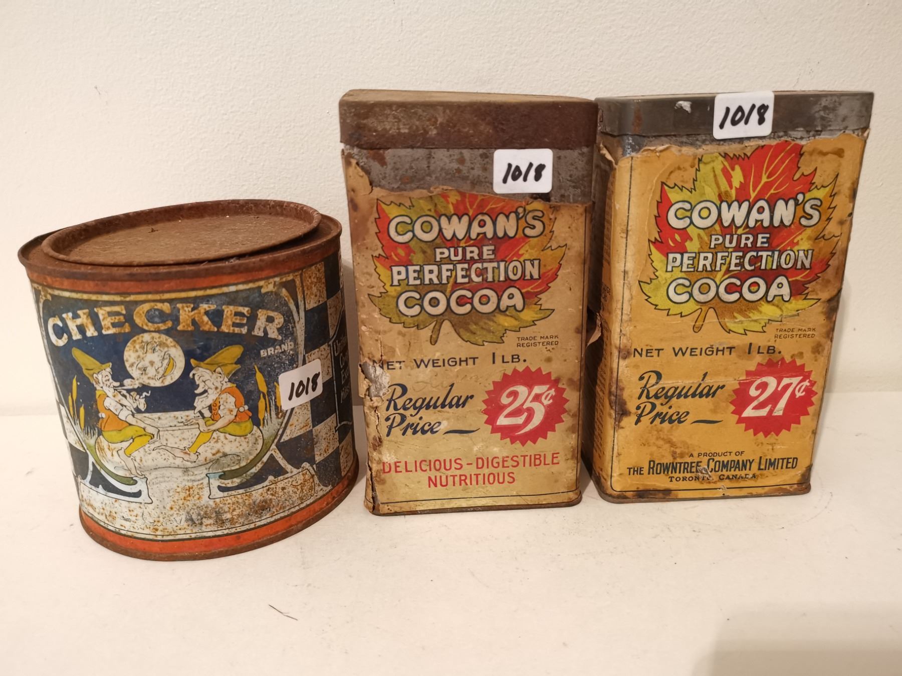 2 Vintage Cowan's Cocoa tins checker jam tin