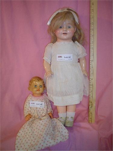 2 Vintage Dolls: 1)Composition & Cloth w/white dress. E.I.H.CO. INC. C on back of neck 2)Rubber w/nightgown. Has Horsman on back of neck