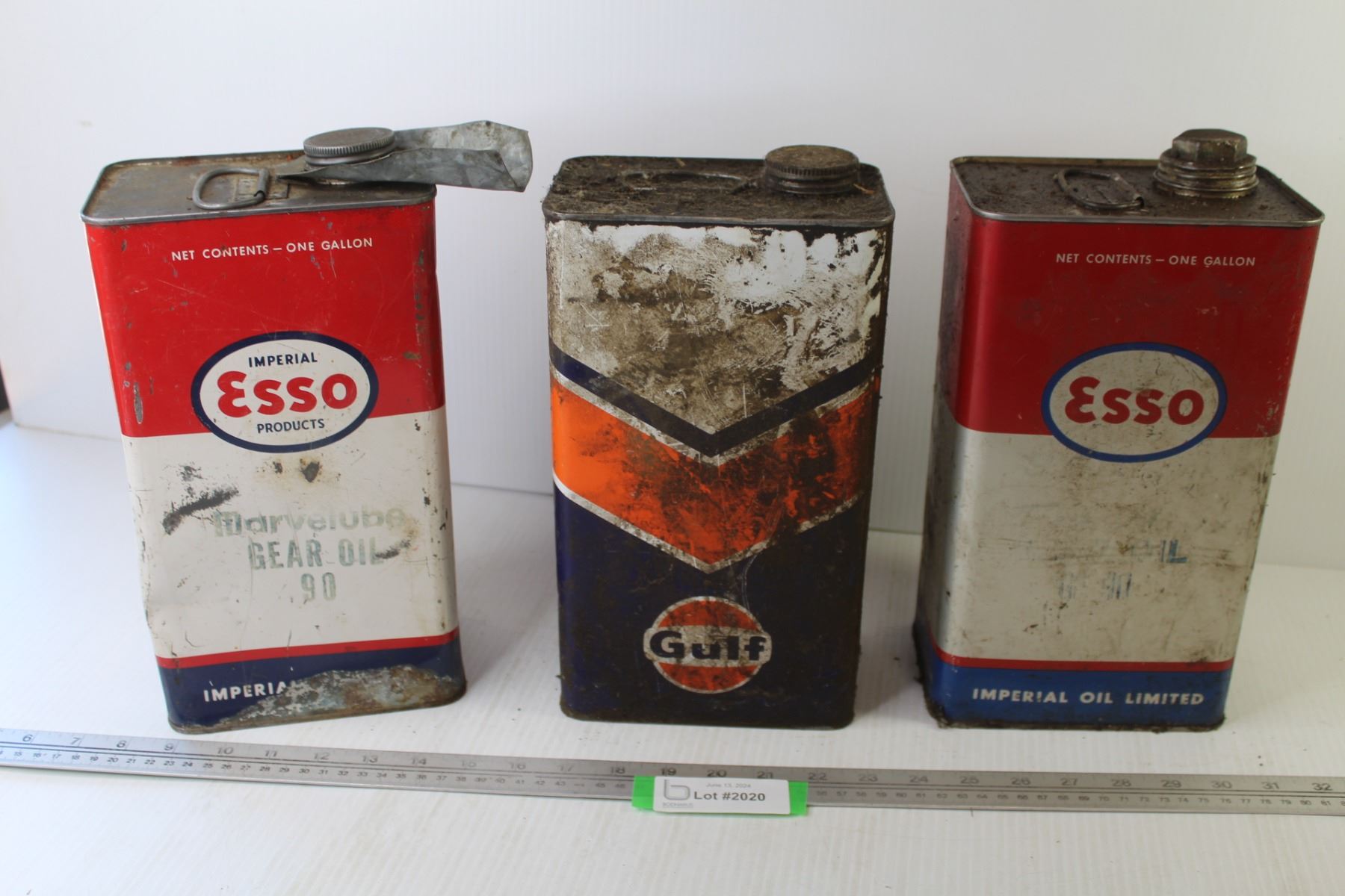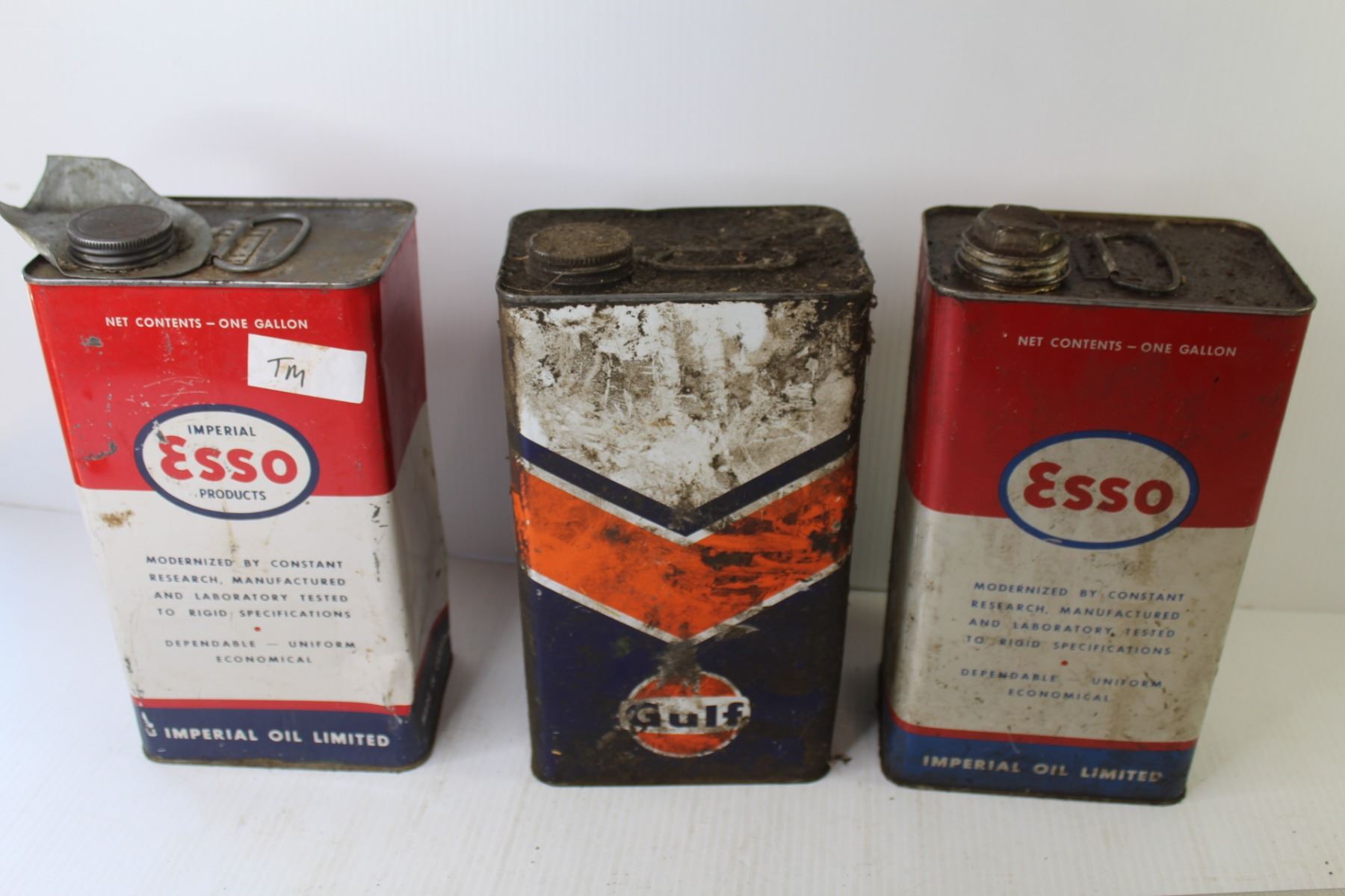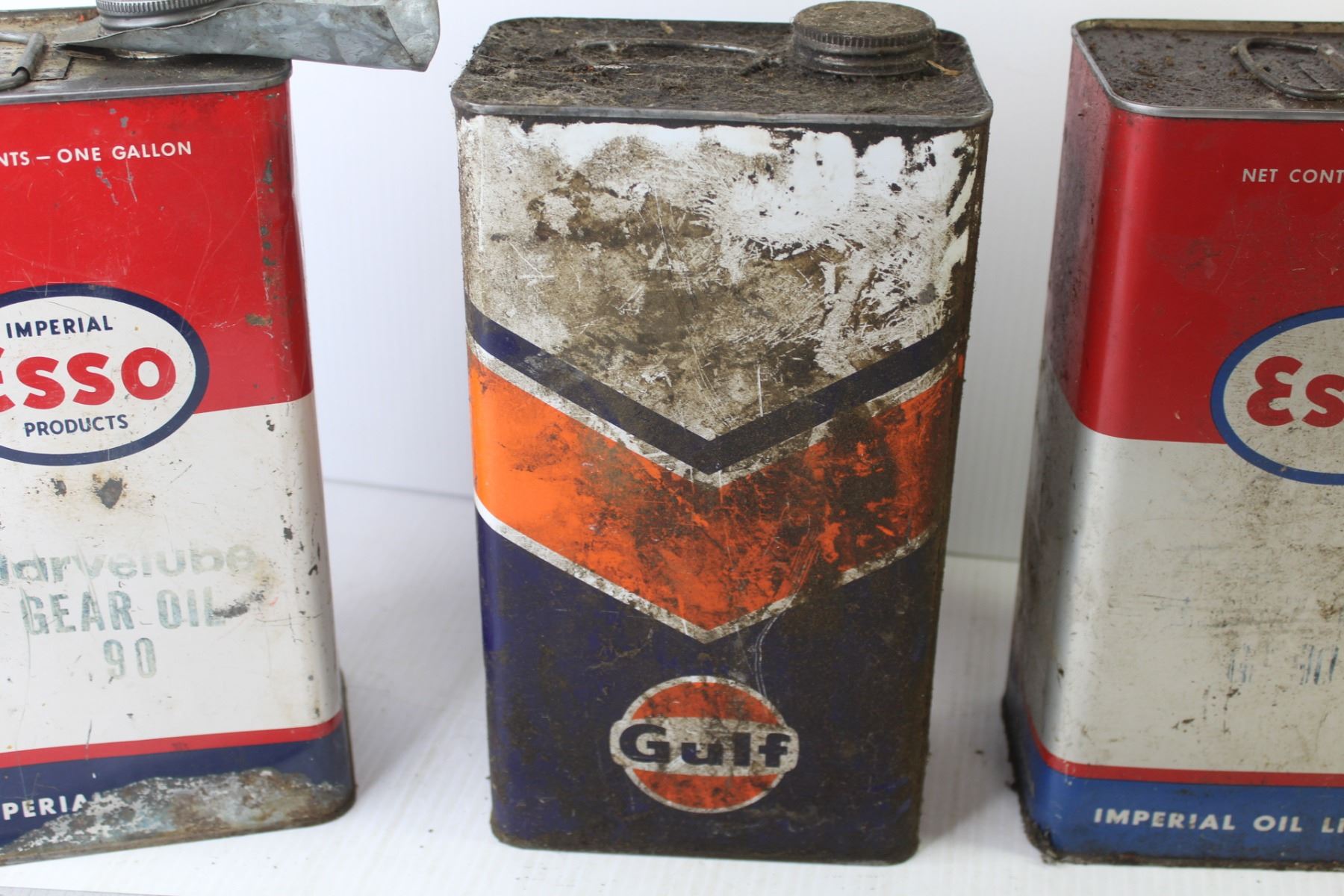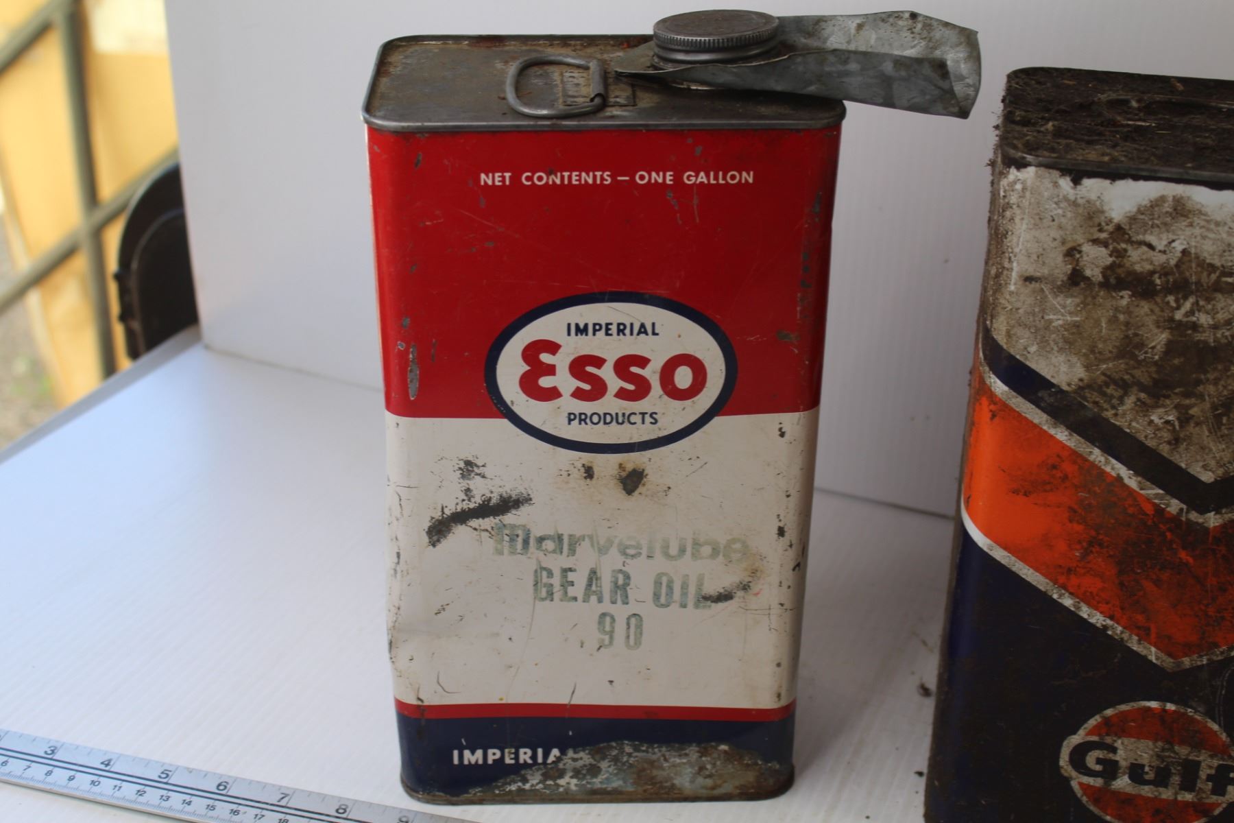 (2) Vintage ESSO Gear Oil Tins (empty) - Gulf 1 Gallon Tin (empty)