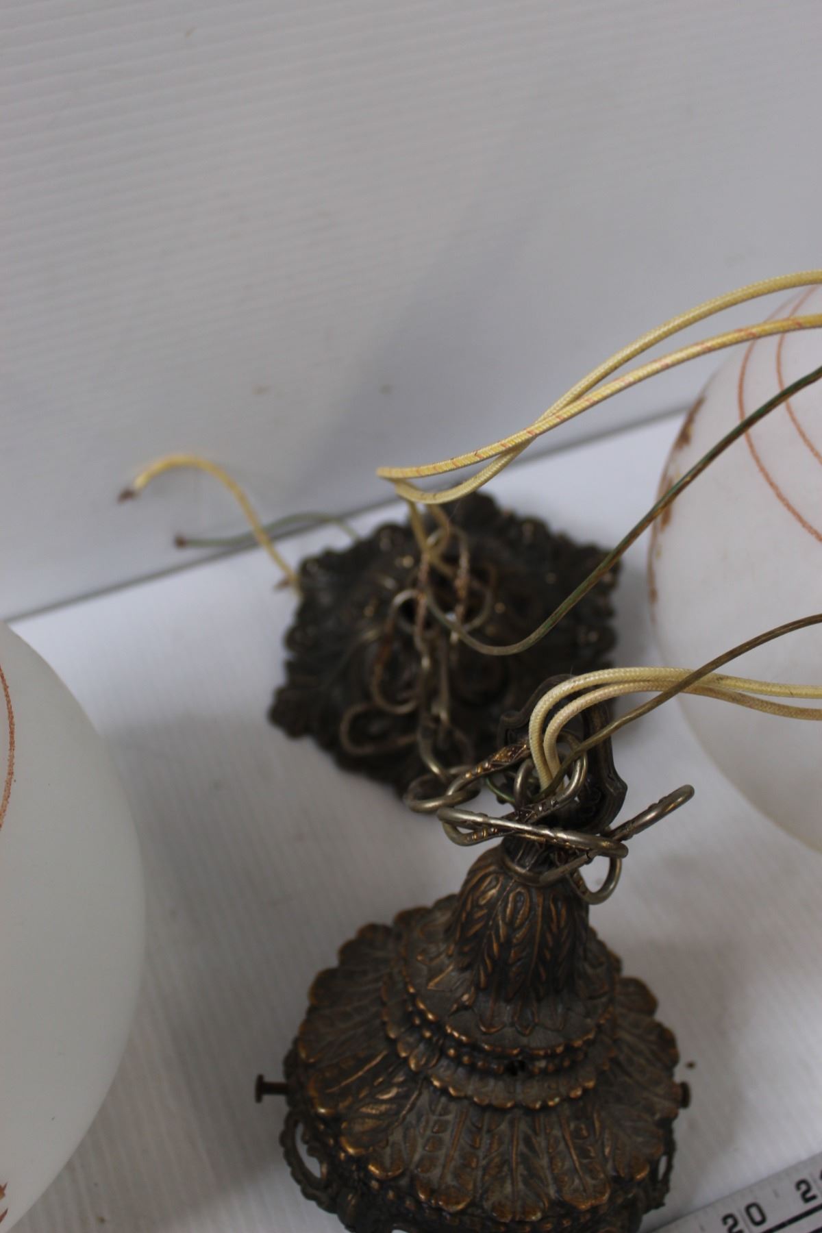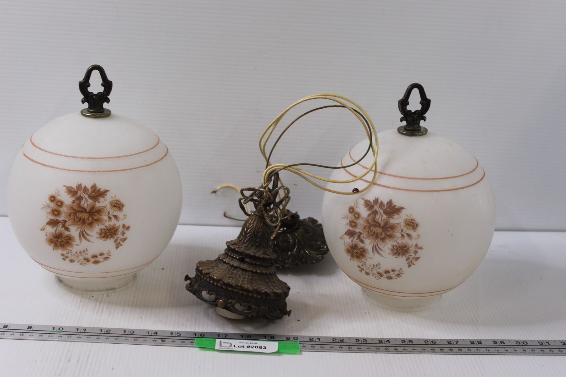 (2) Vintage Floral Glass Shades w/Ceiling Mounting Hardware - as is