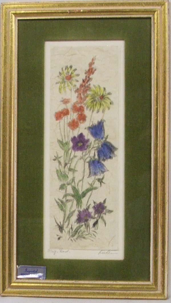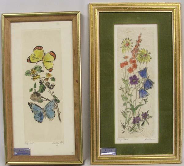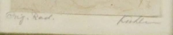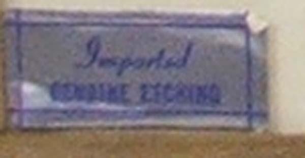 2 Vintage Framed Etchings. One Gold gilded frame, second frame is wood with metal trim, etchings under glass. Visual on largest measures approx. 9 3/4''H x 3 1/2''W. Buyers Pay Actual Shipping and Handling Charges(see terms and conditions for more information).