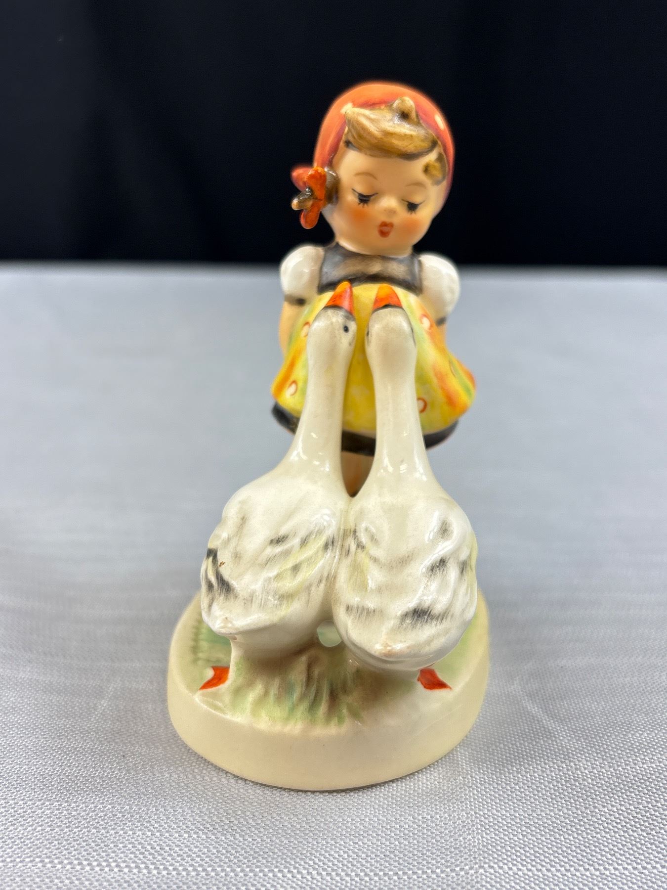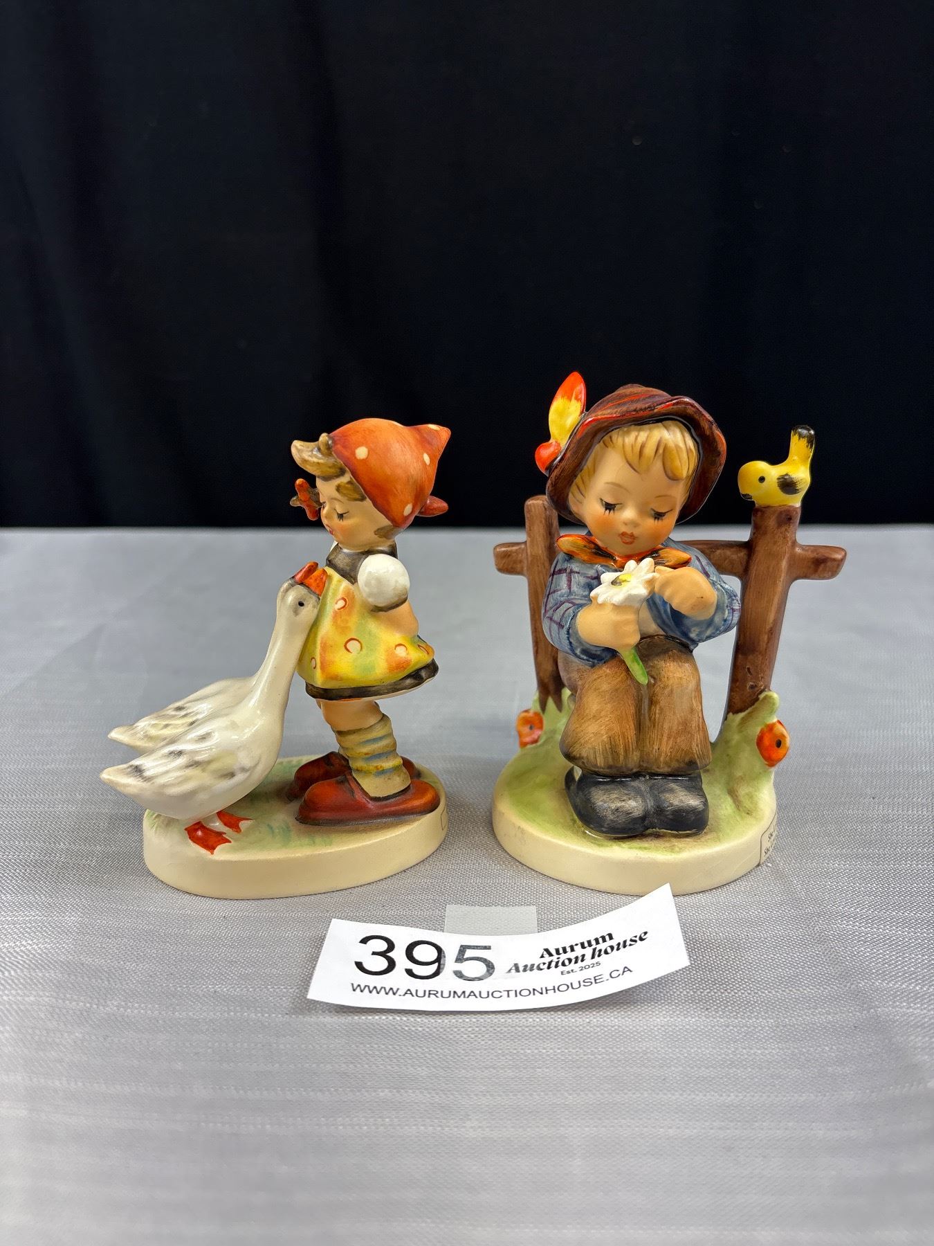 2 Vintage Hummel Porcelain Figures "Goose Girl + She Loves Me Not" Made in West Germany Each
