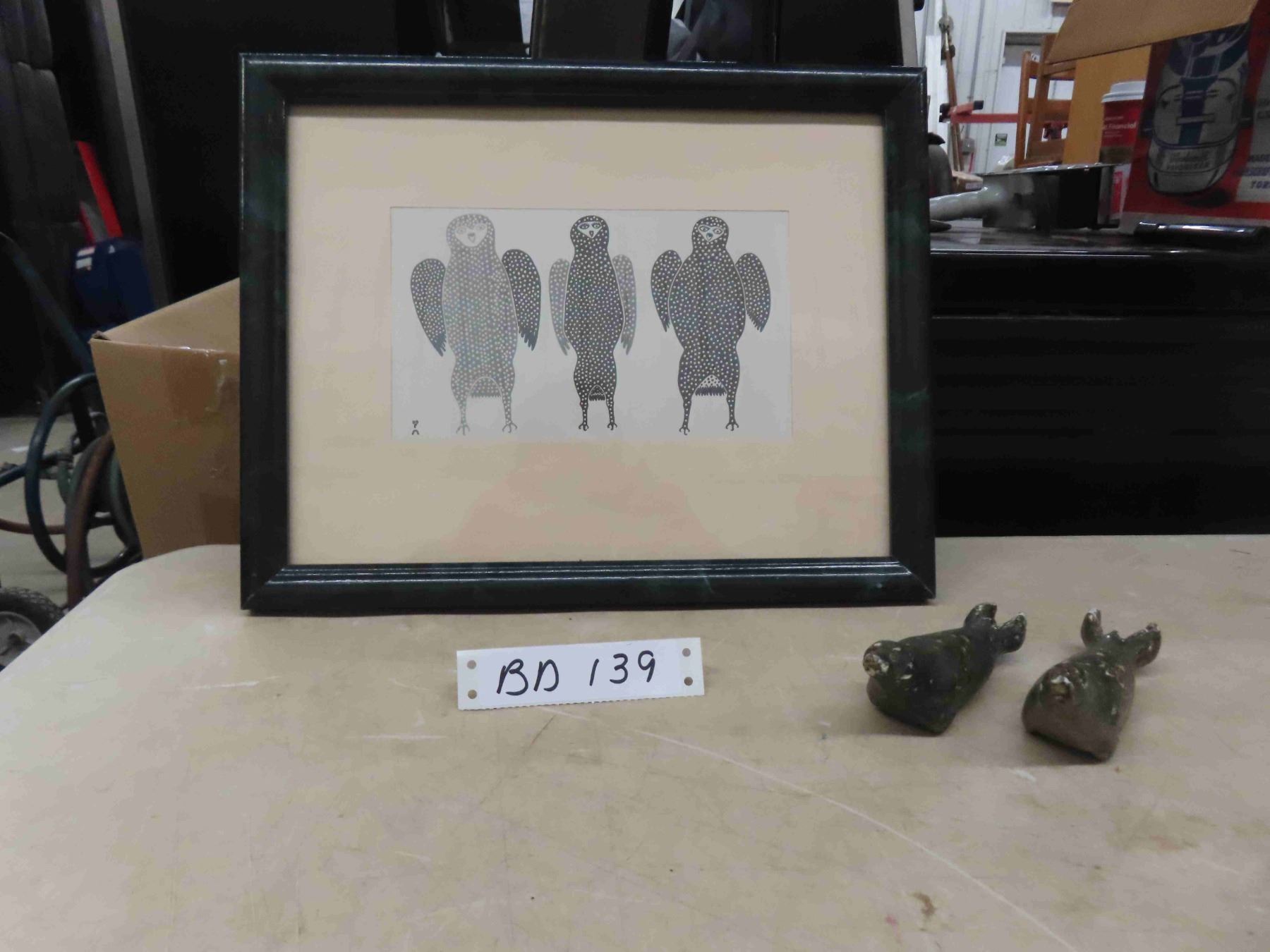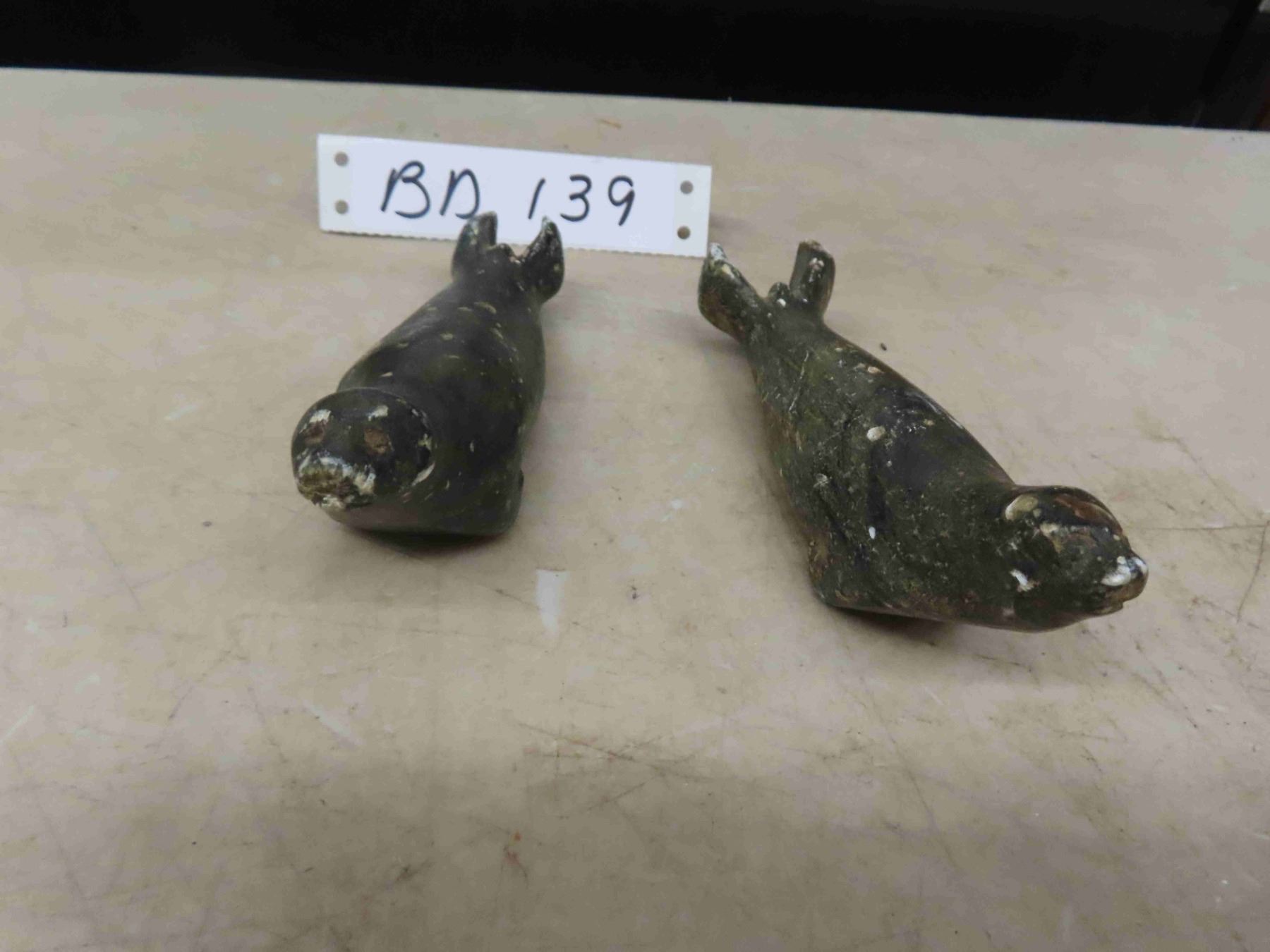 2 Vintage Inuit Soapstone Carvings - Both are Signed and Measure 5'' L , Inuit Framed Print