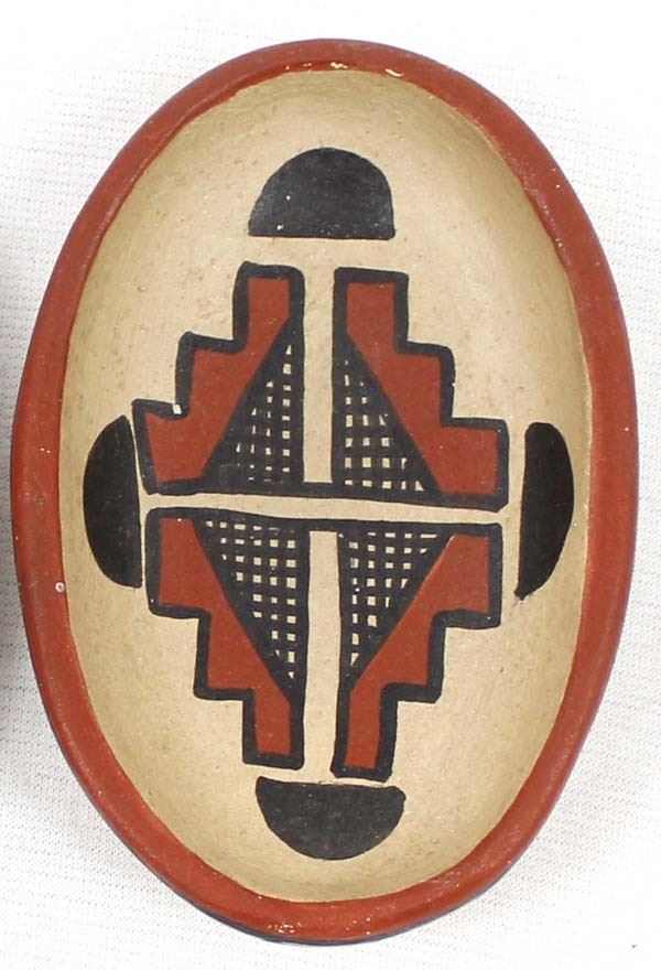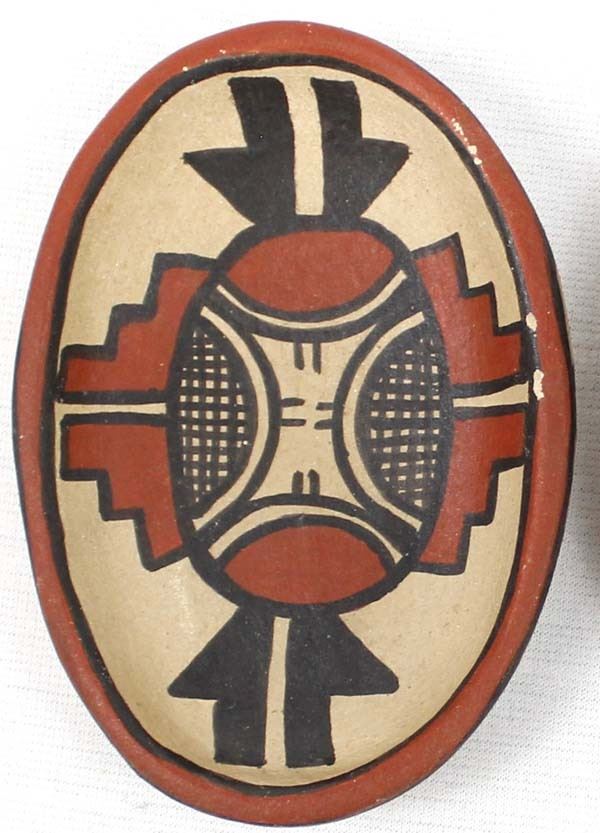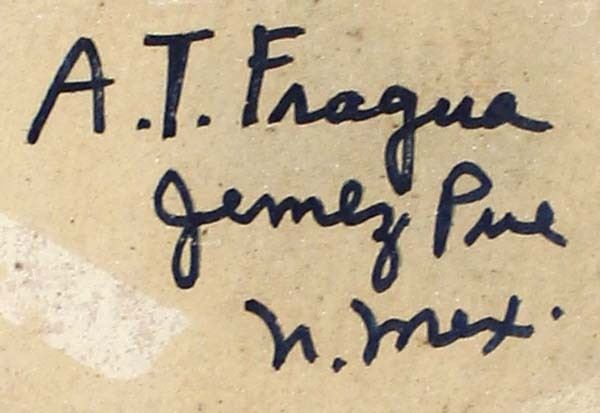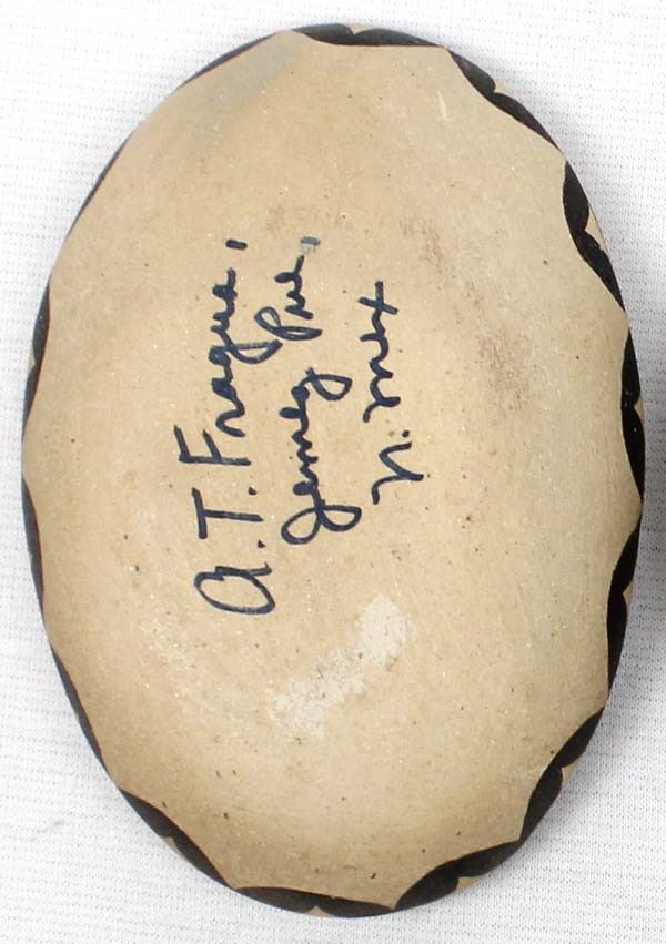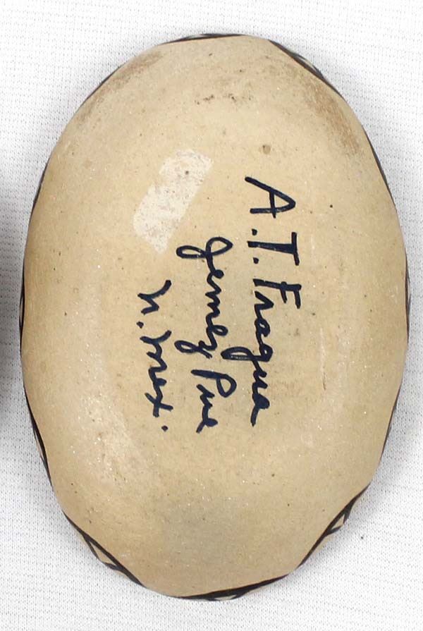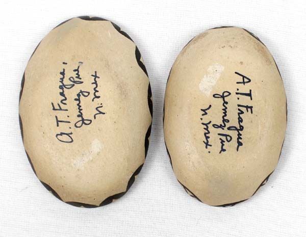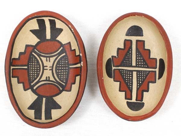 2 Vintage Native American Jemez Pottery Shallow Bowls by A. T. Fragua, largest measures 3 7/8''L x .75''H, both are signed on the bottom, some minor loss of paint on rim