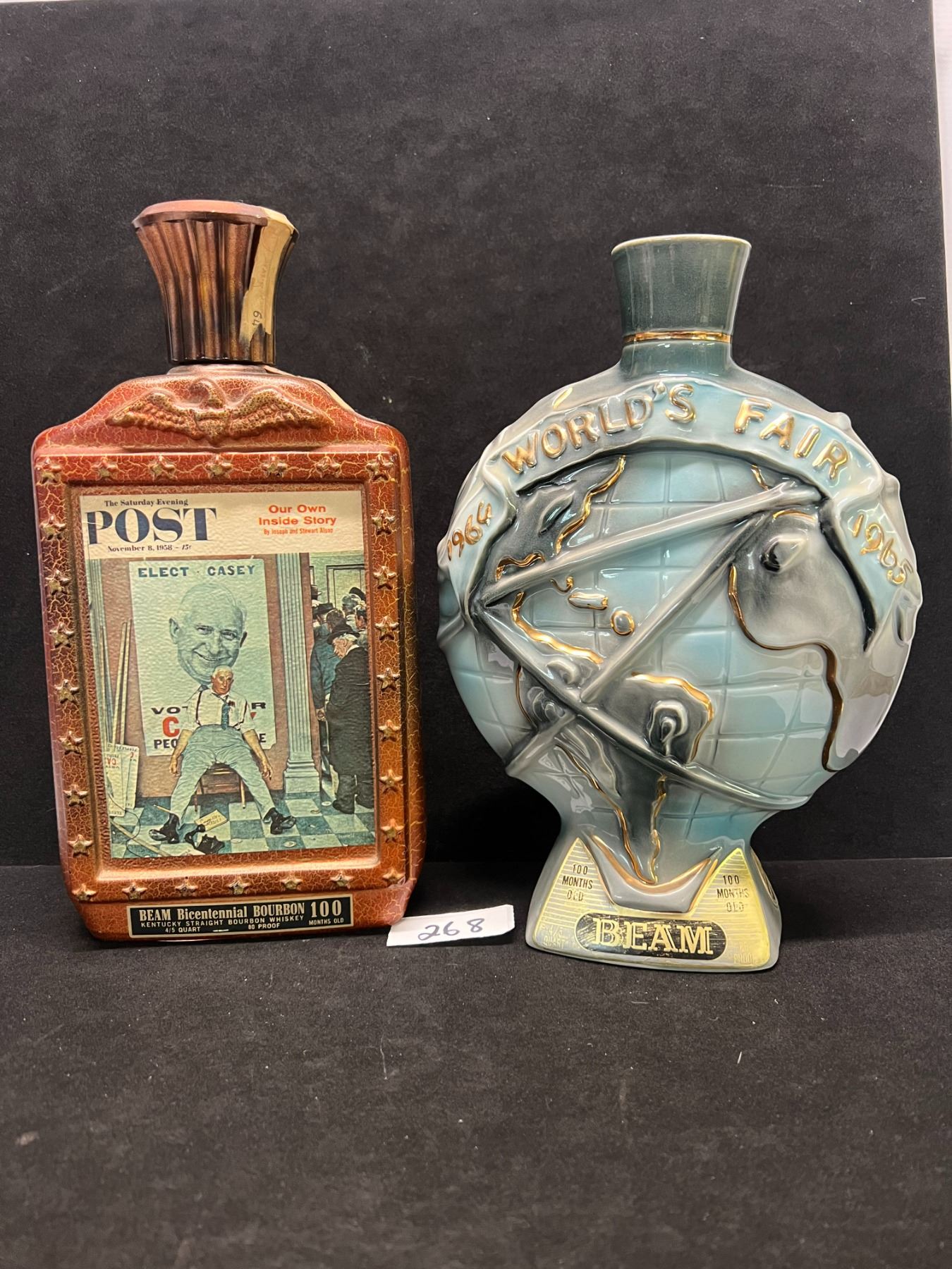 2 Vintage Jim Beam Decorative Bottles / Decanters Approx: 10.25"T 5.5"W