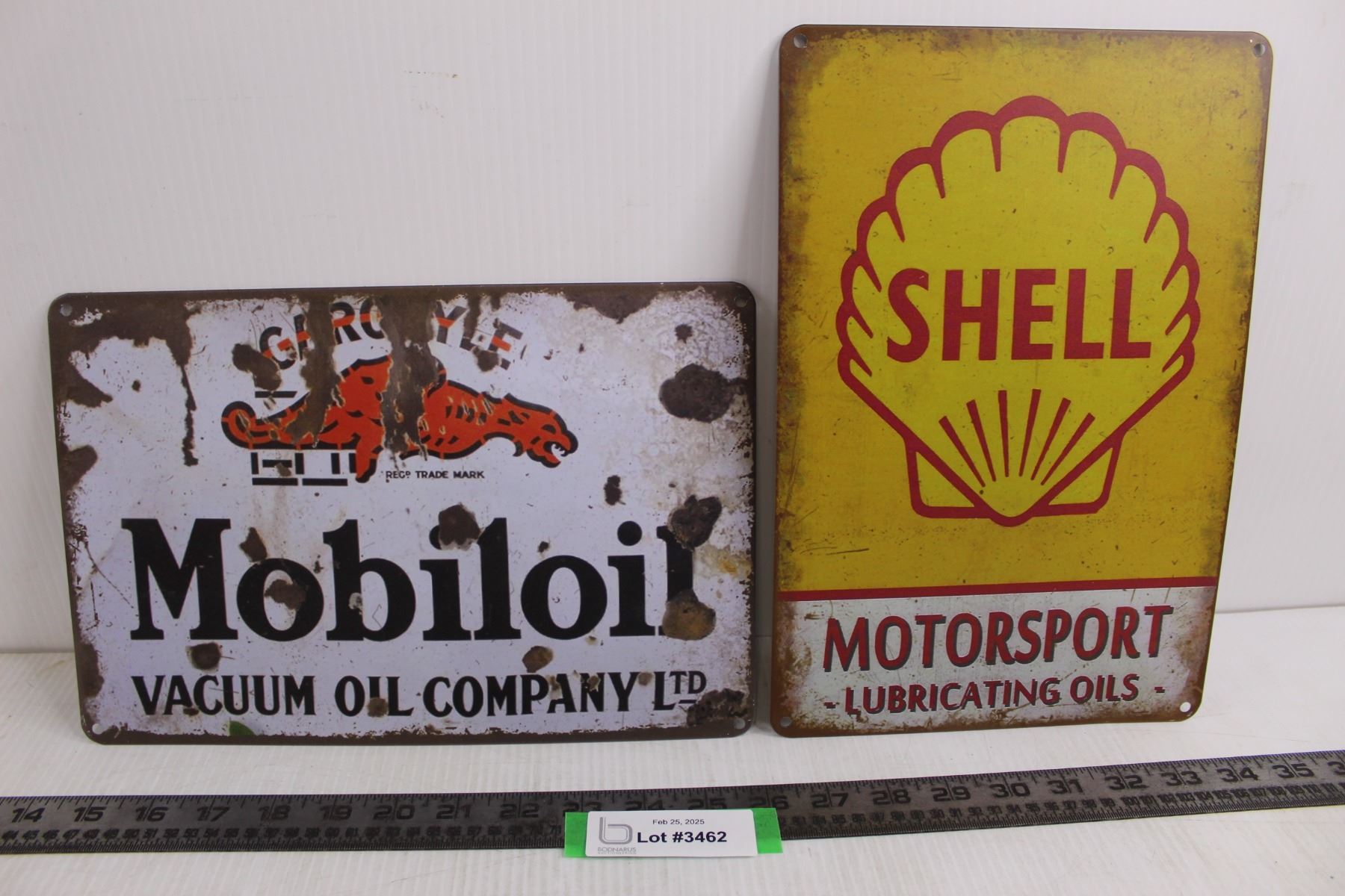 (2) Vintage Looking Metal Signs (Mobiloil & Shell) 8" x 12"
