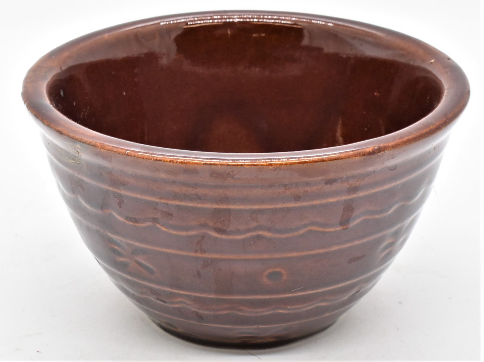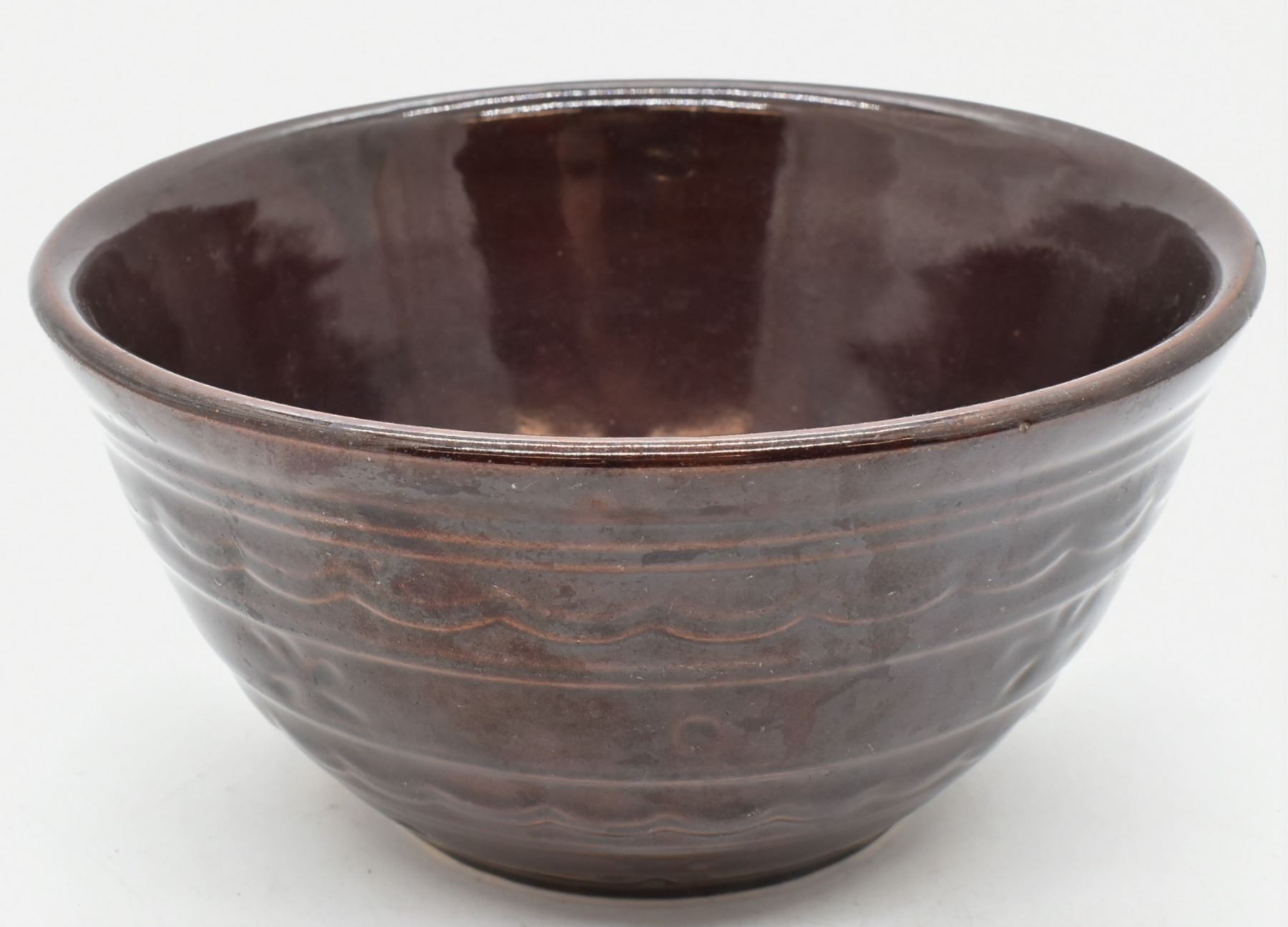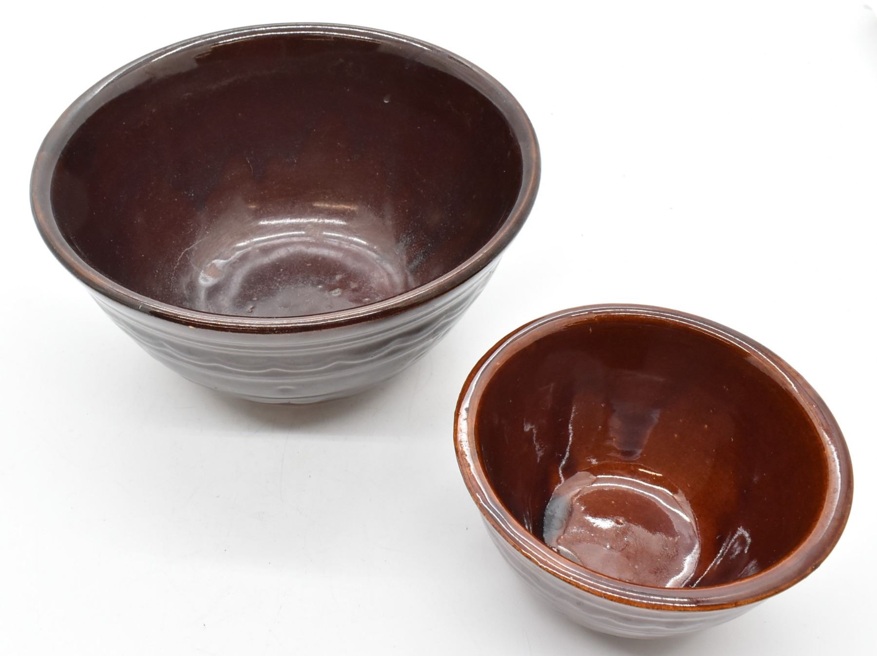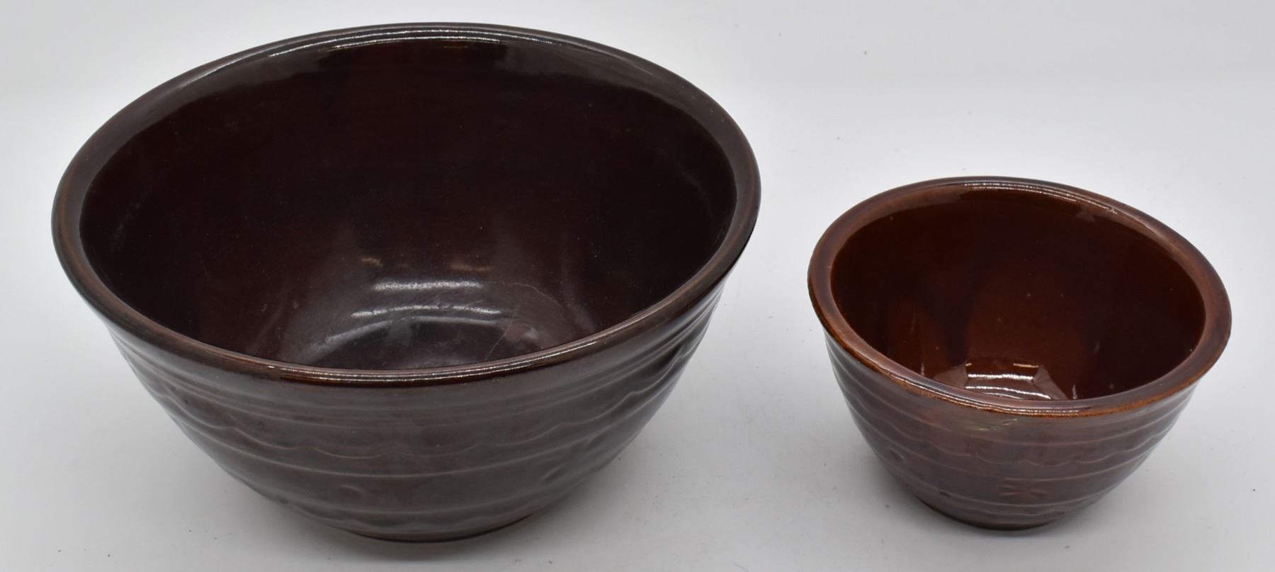 2 Vintage Marcrest Stoneware Nesting Bowls, oven safe, large one is marked on the bottom, small one is marked USA, largest measures 8.25''D