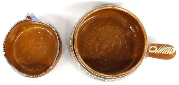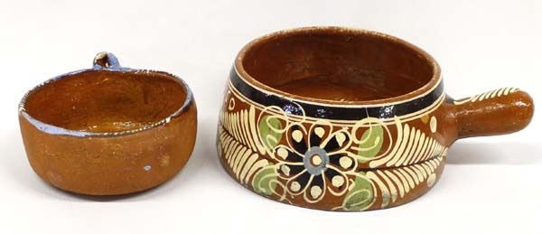 2 Antique/Vintage Mexican Redware Pottery Bowls, largest measures 3.75'' x 10'' x 7''