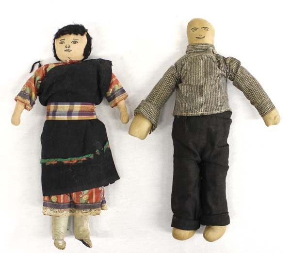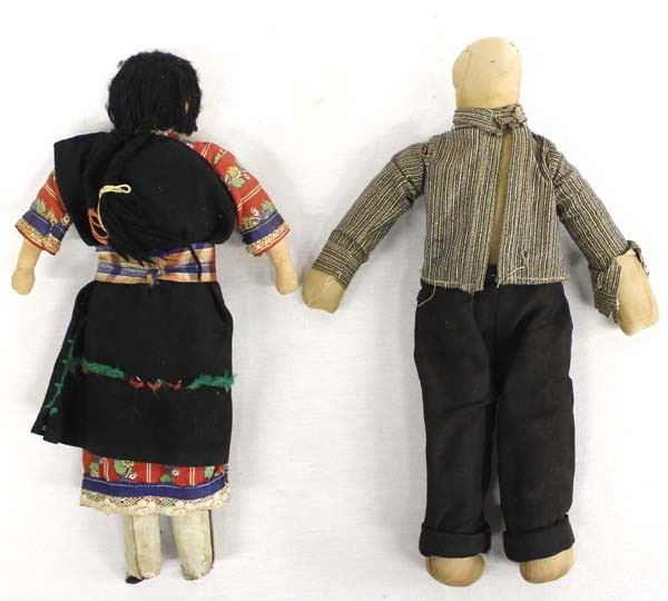 2 Vintage Native American Hopi Cloth Dolls, longest measures 11''L, male is missing hair
