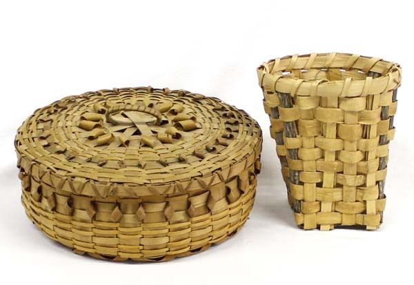 2 Vintage Native American Penobscot Baskets, largest measures 3.5''H x 10''D