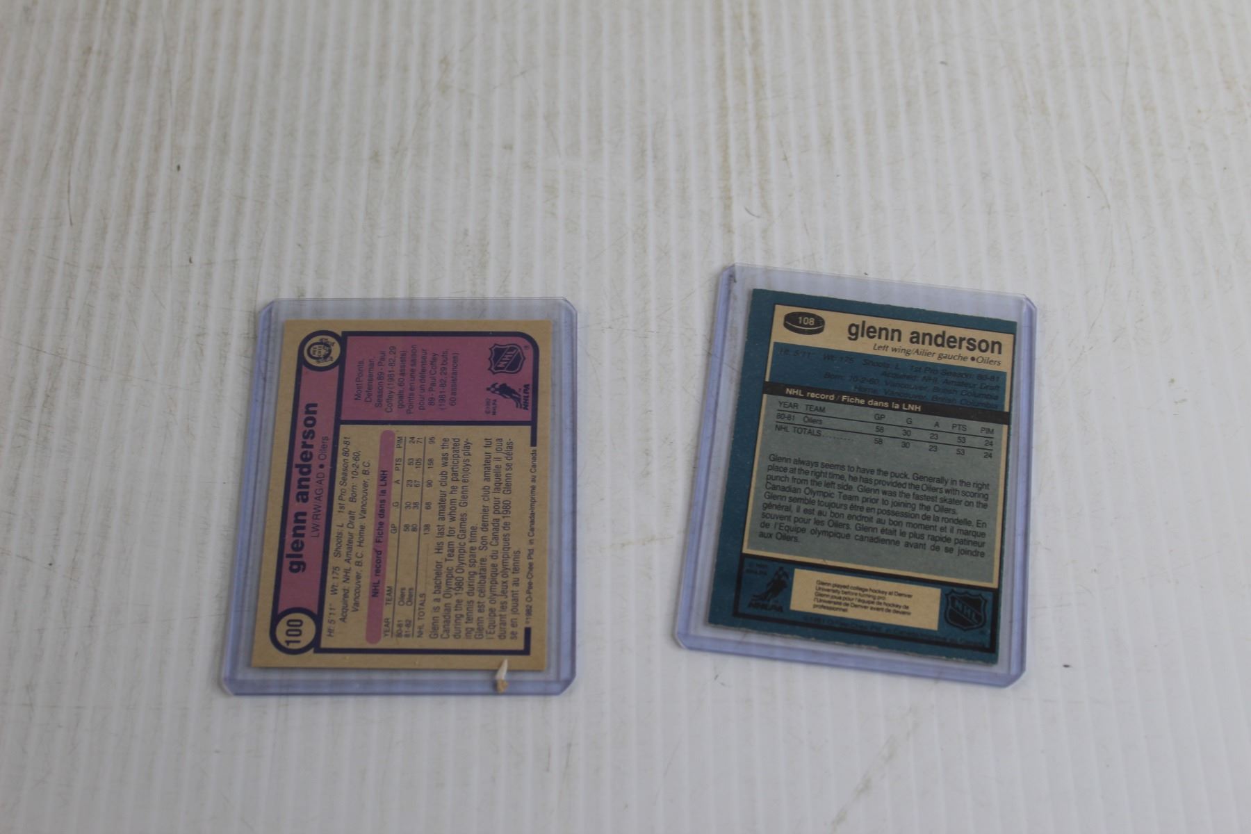 (2) Vintage OPC Glen Anderson Cards - Rookie Card