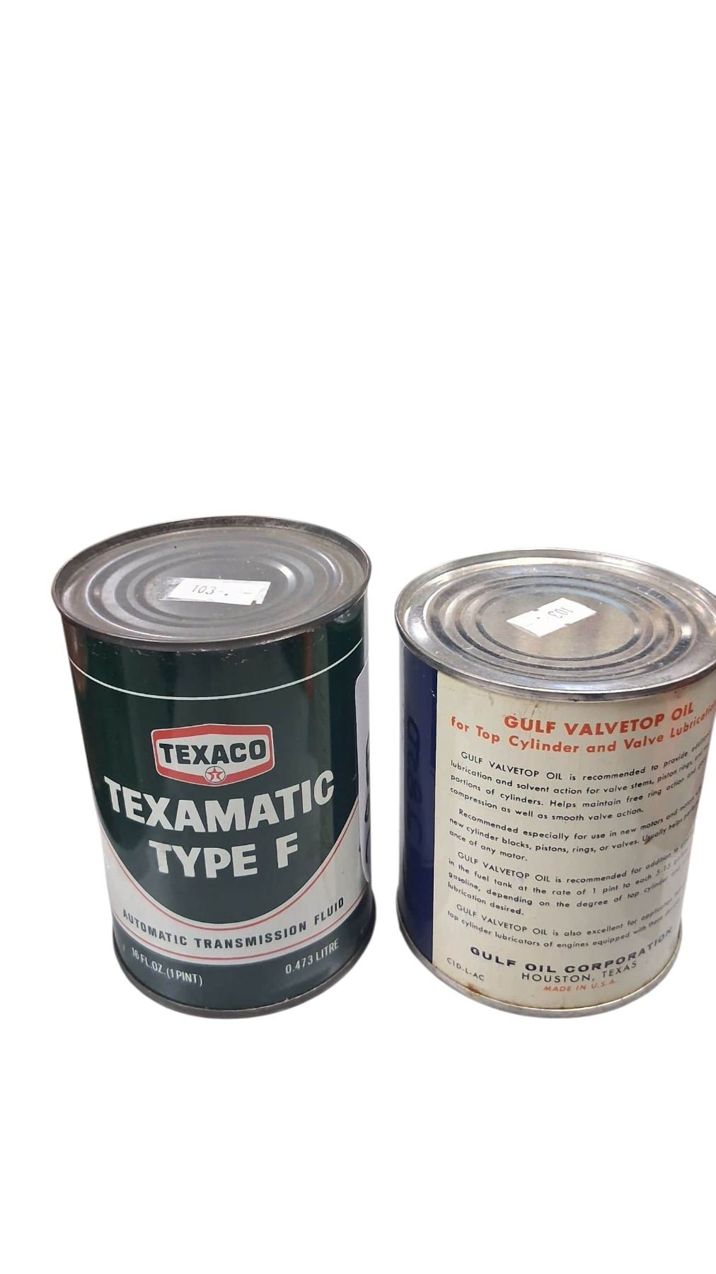 2 Vintage Oil Cans, Gulf amd Texaco, 1 Pint each