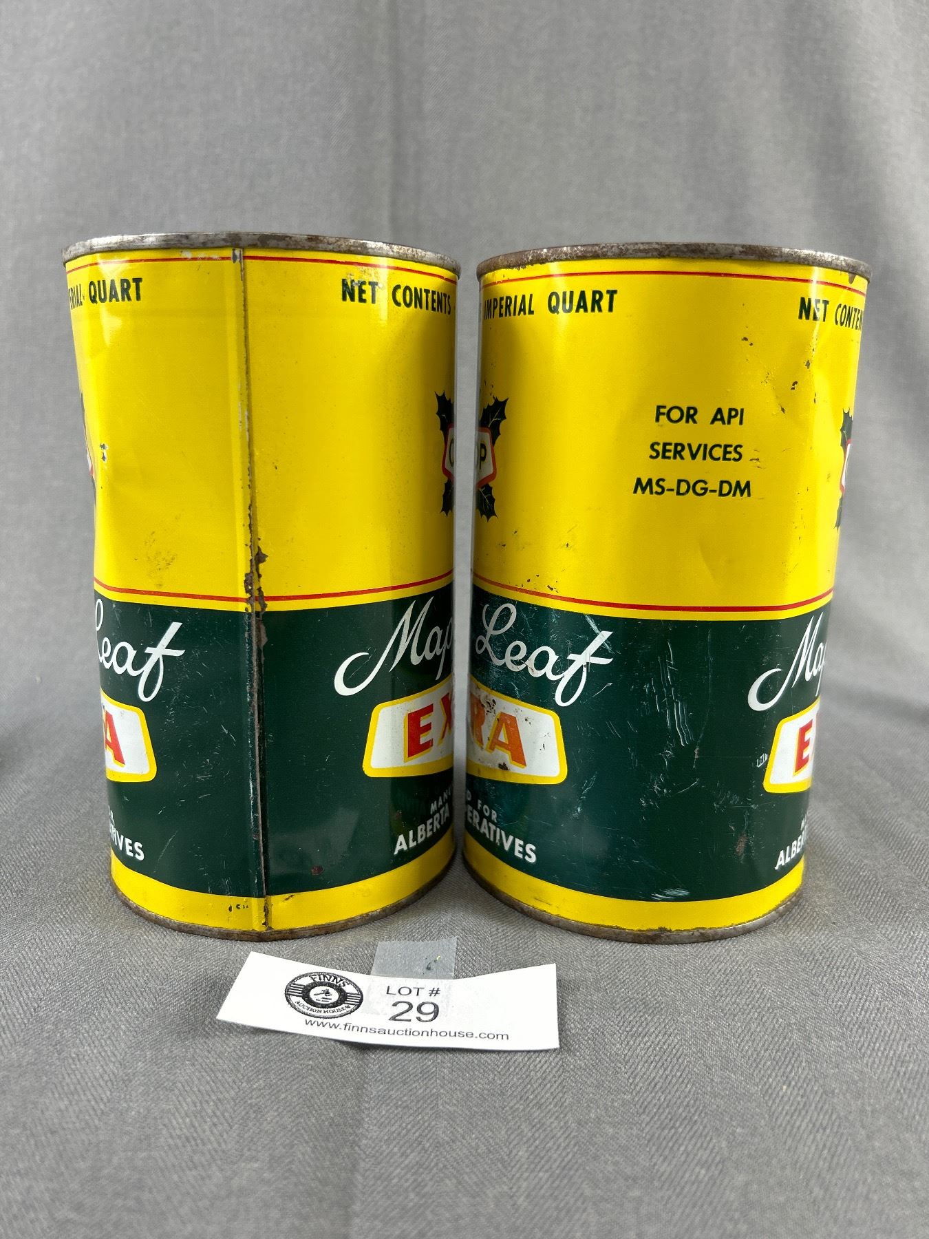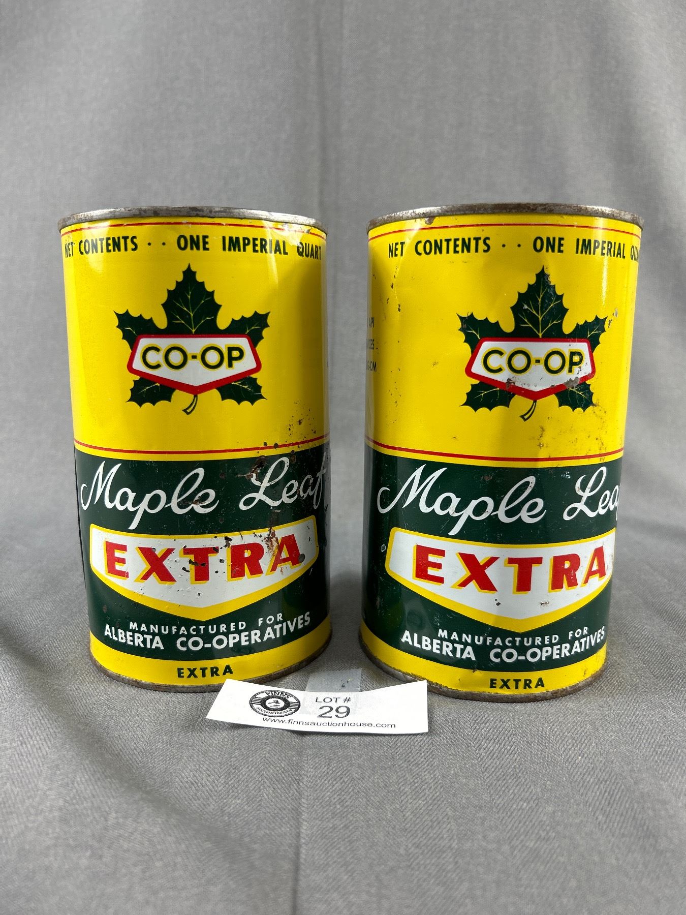 2 Vintage One Imperial Quart, Co-Op Maple Leaf Oil Tins. Empty