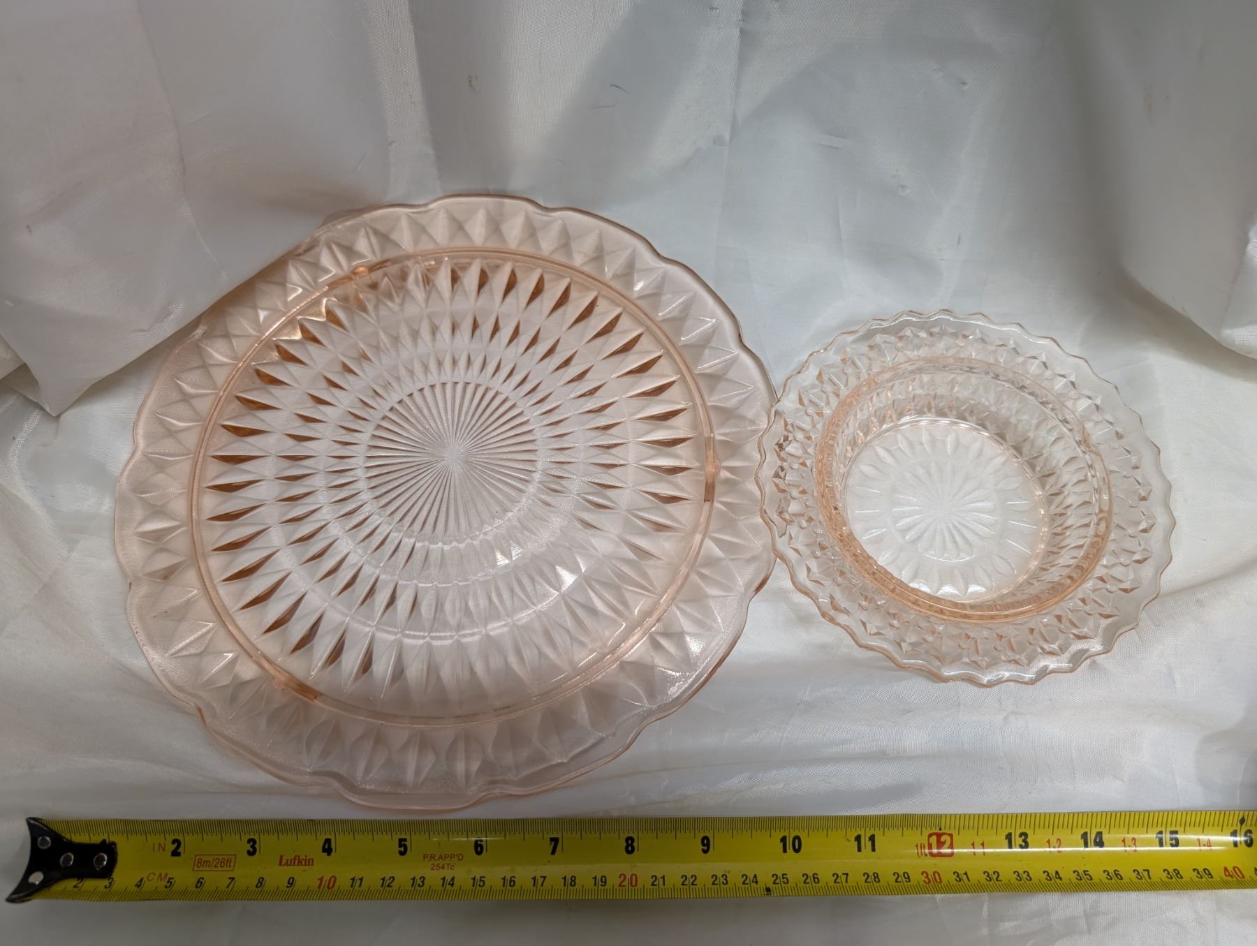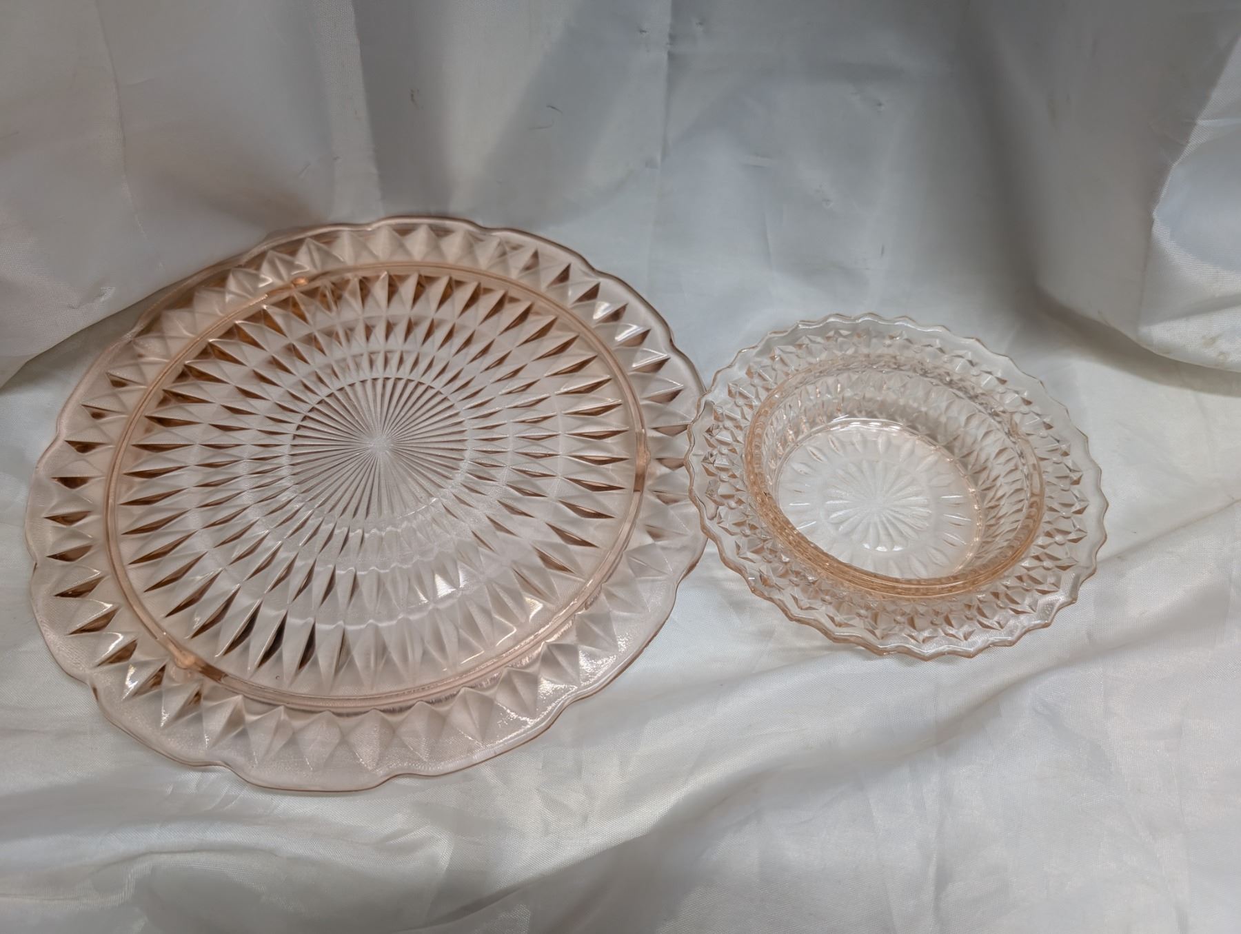 (2) Vintage Pink Depression Glass (Round Bowl and Tray)