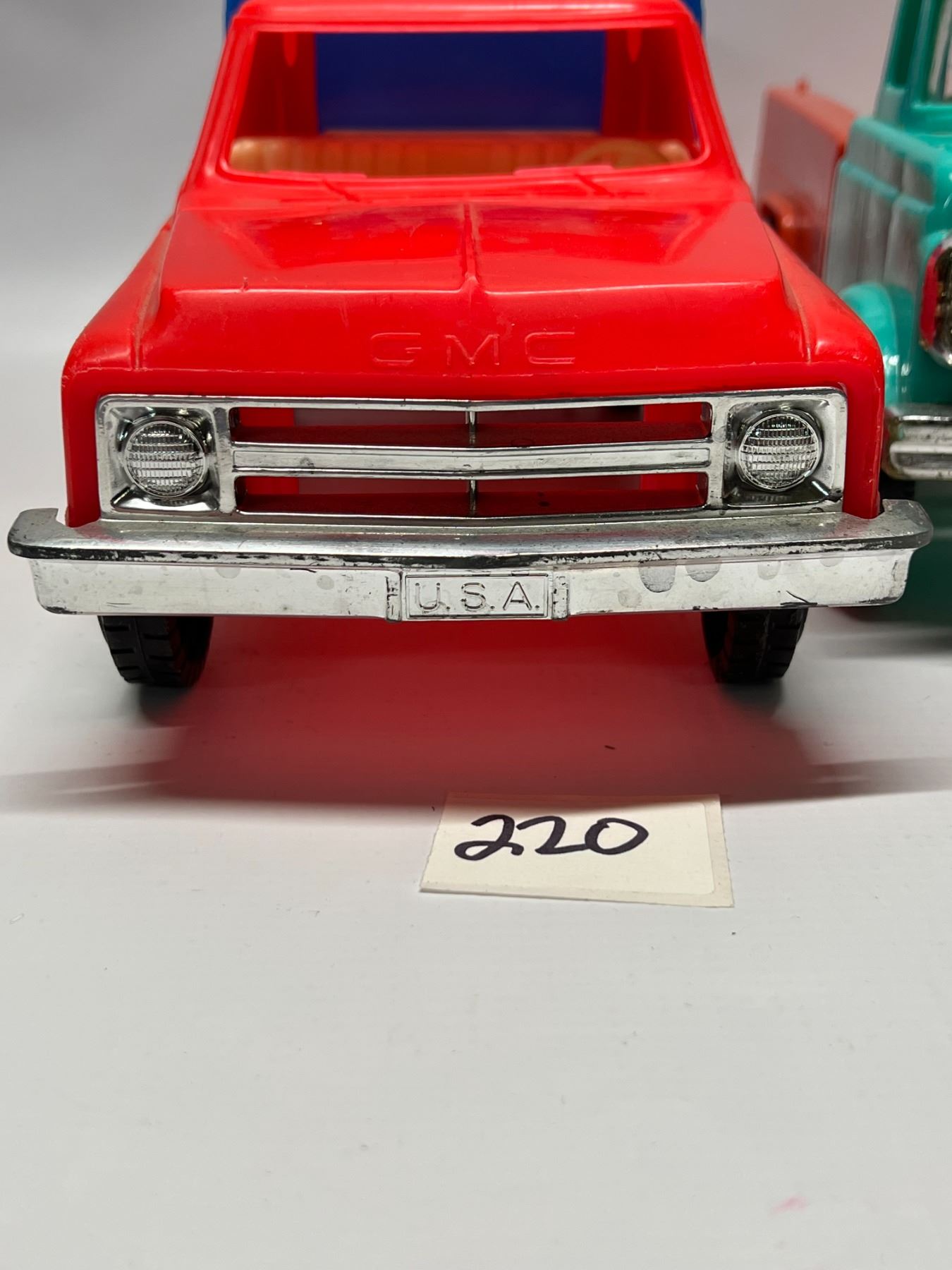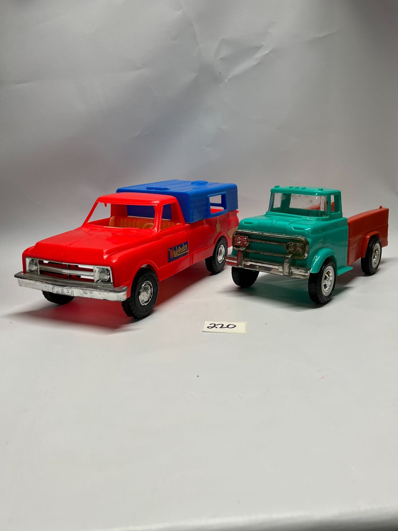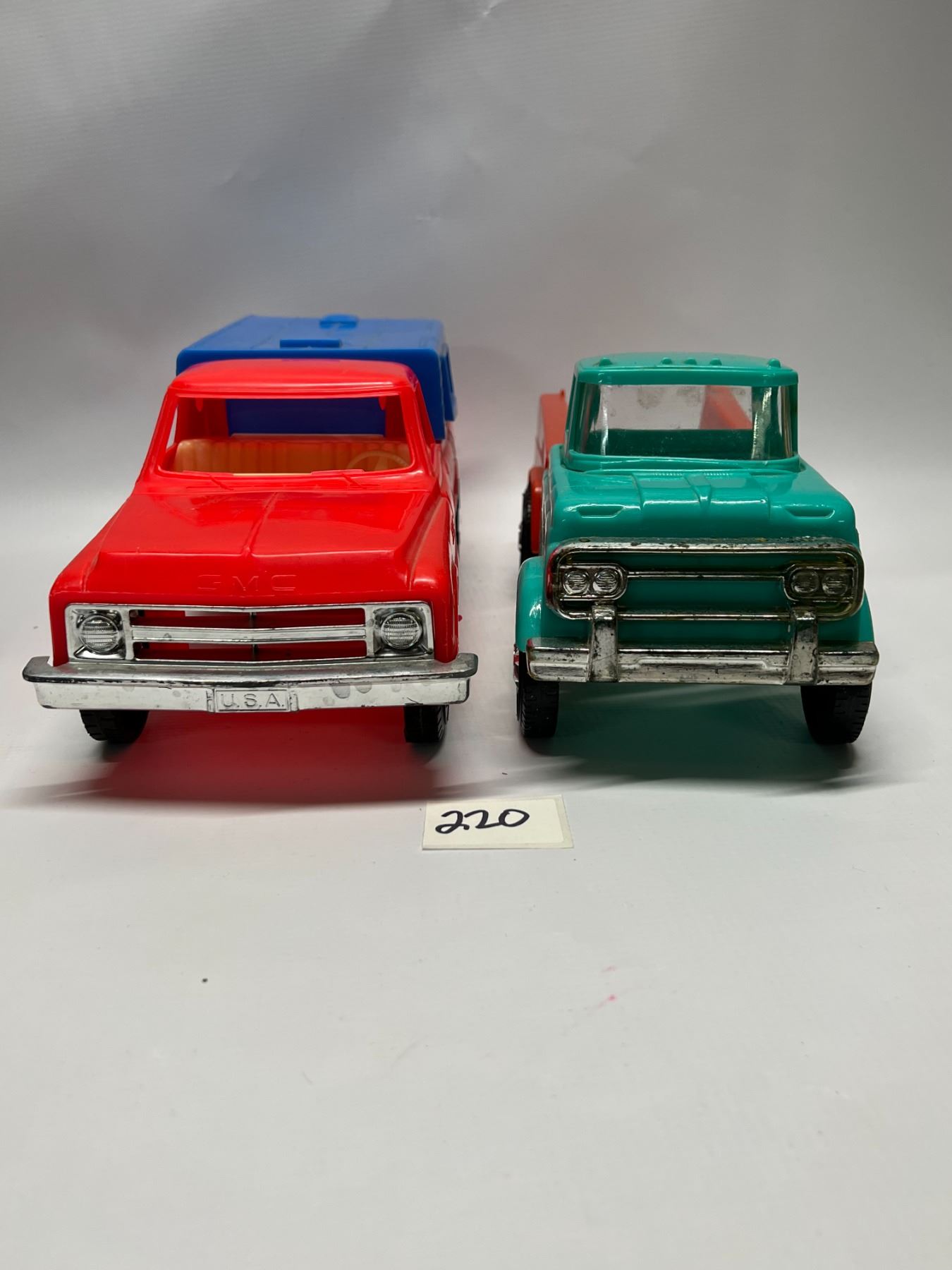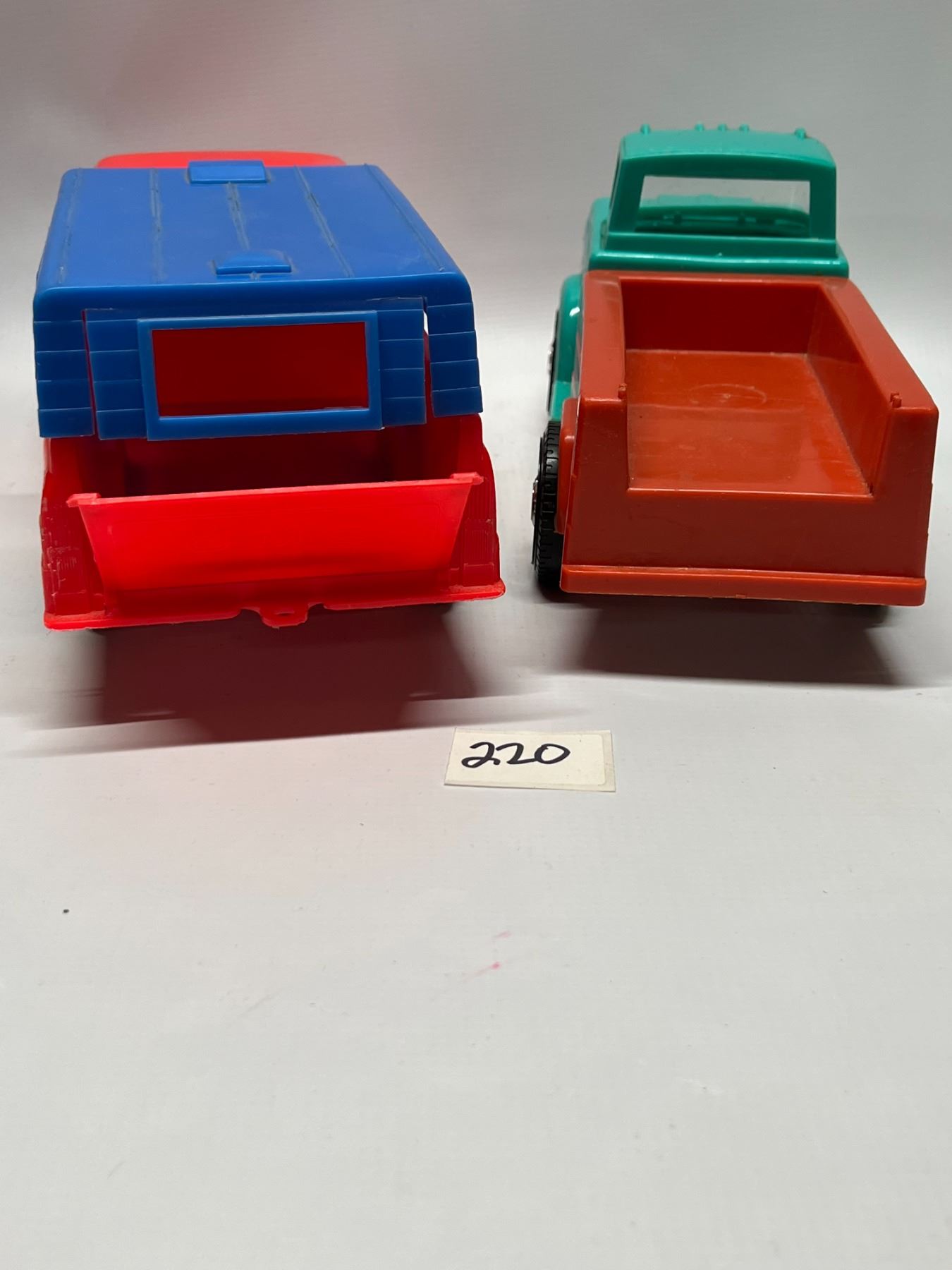 2 Vintage Placstic Toy Trucks (1) is processed Plastic USA (1) unmarked