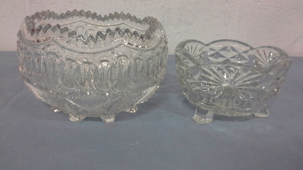 2 Vintage Pressed Glass Bowls (6" and 5" diameters, 4" and 3" high)