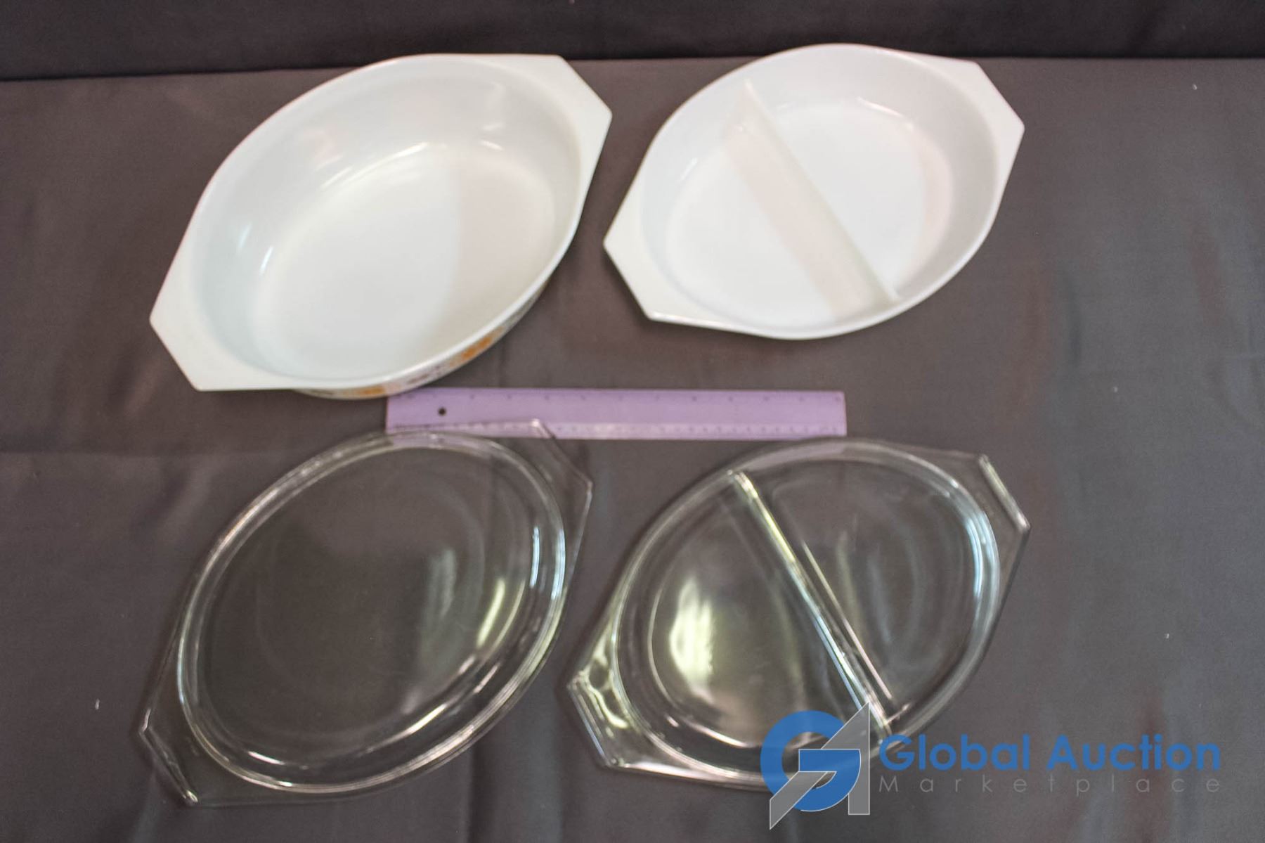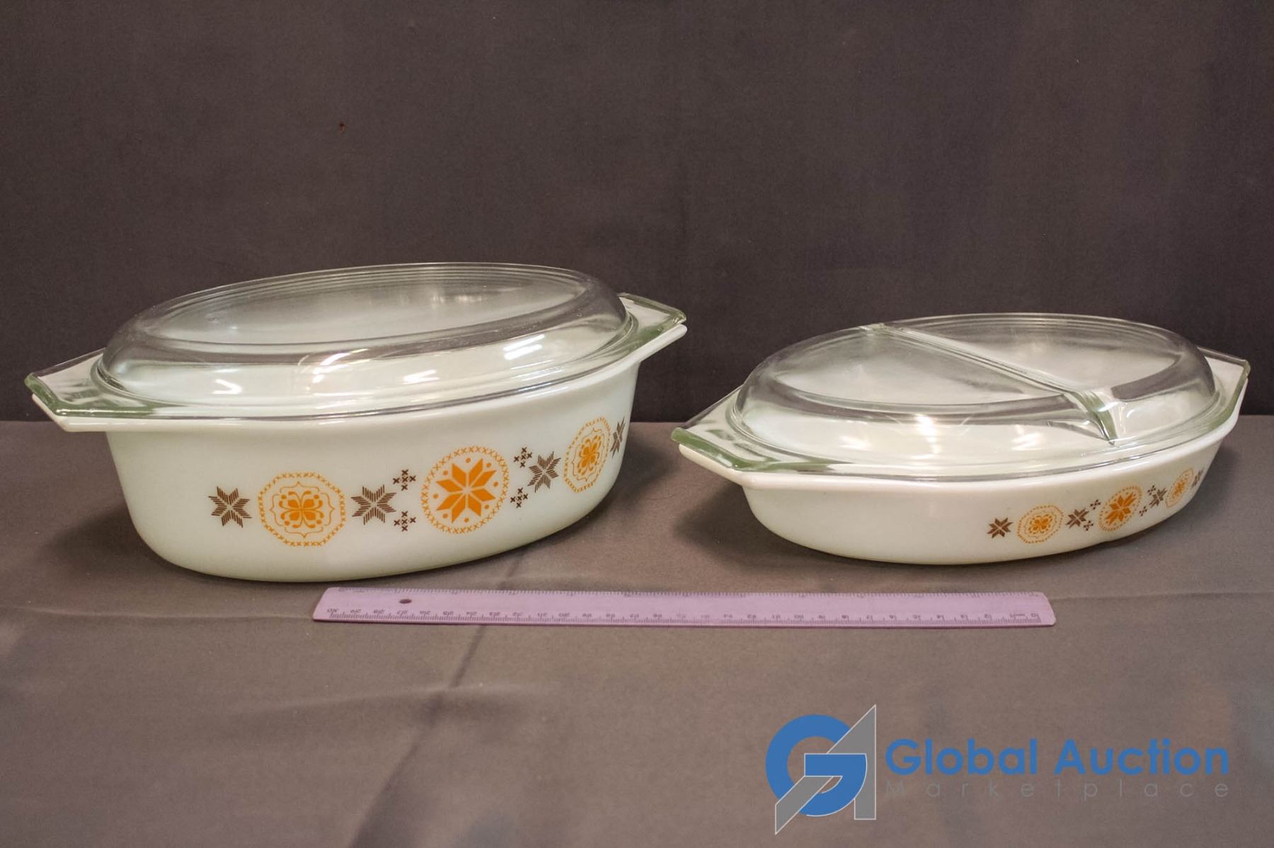 2 Vintage Pyrex Dual Serve Casserole Dishes Town & Country Pattern (1963-1967)