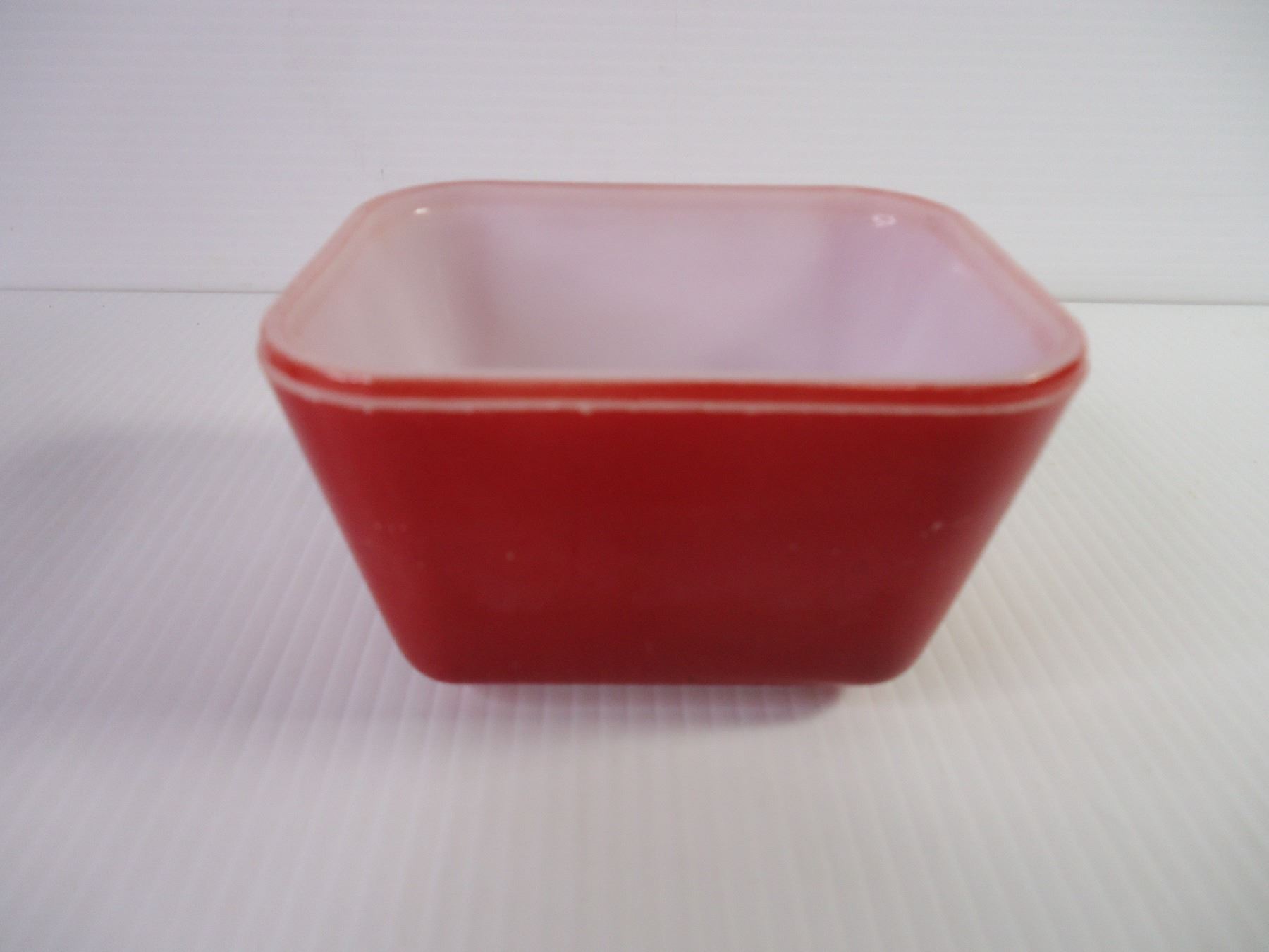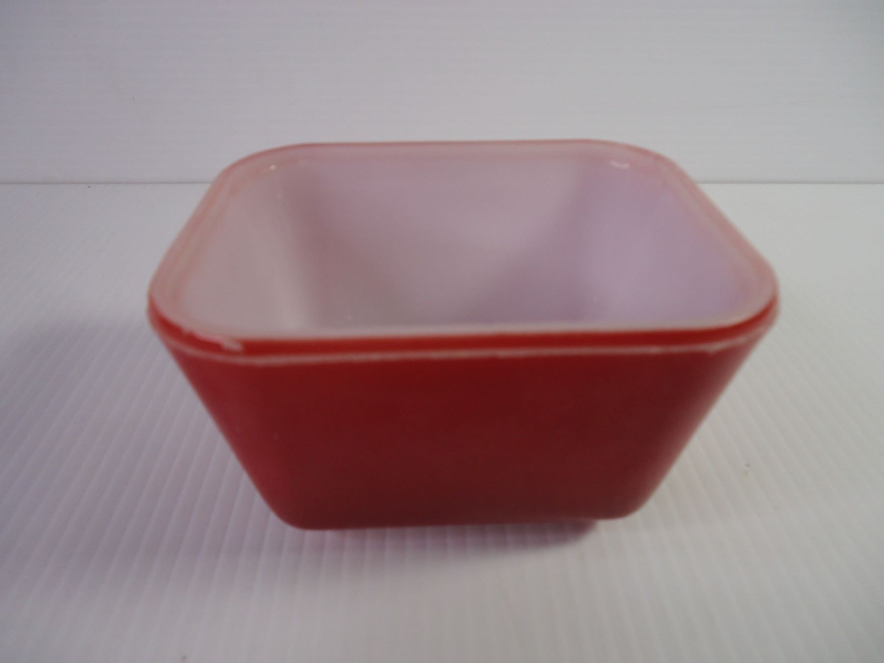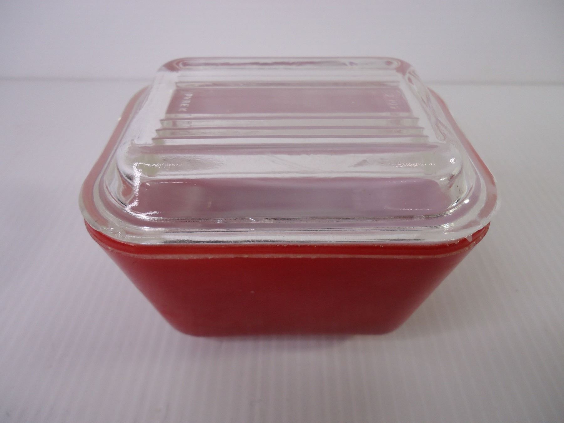 (2) Vintage Pyrex Red Refrigerator Dish with Ribbed Lid- the other has no lid