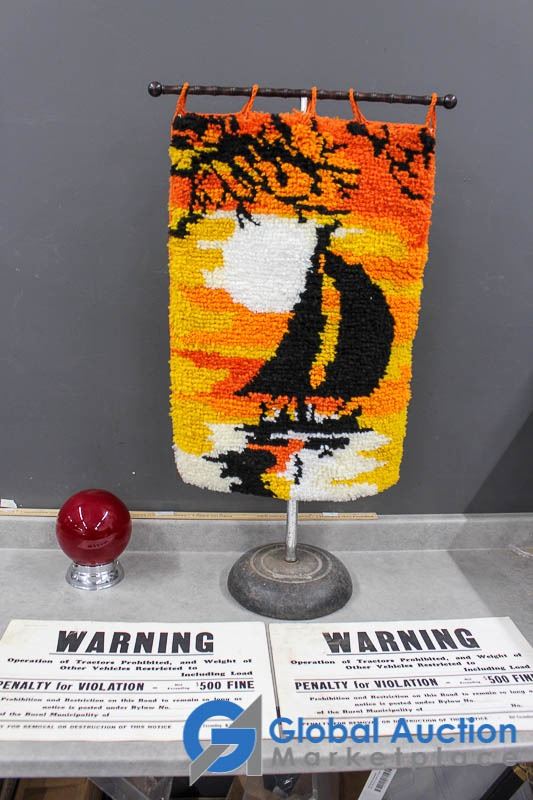 (2) Vintage SARM Weight Restriction Signs, Wall Tapestry, & Emergency Exit Light