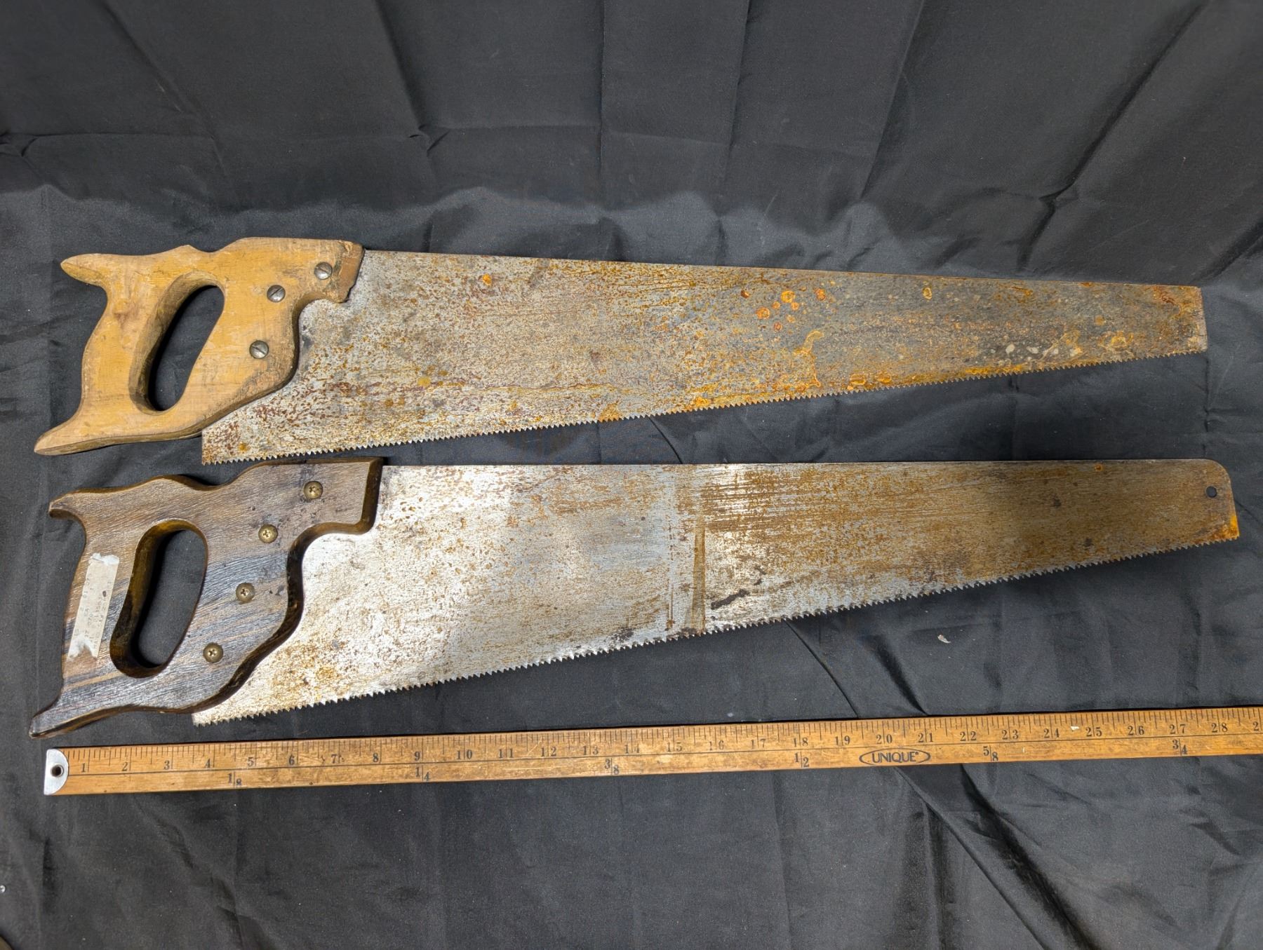 (2) Vintage Saws (1) W/ Leaf Pattern 28" Saw Blade