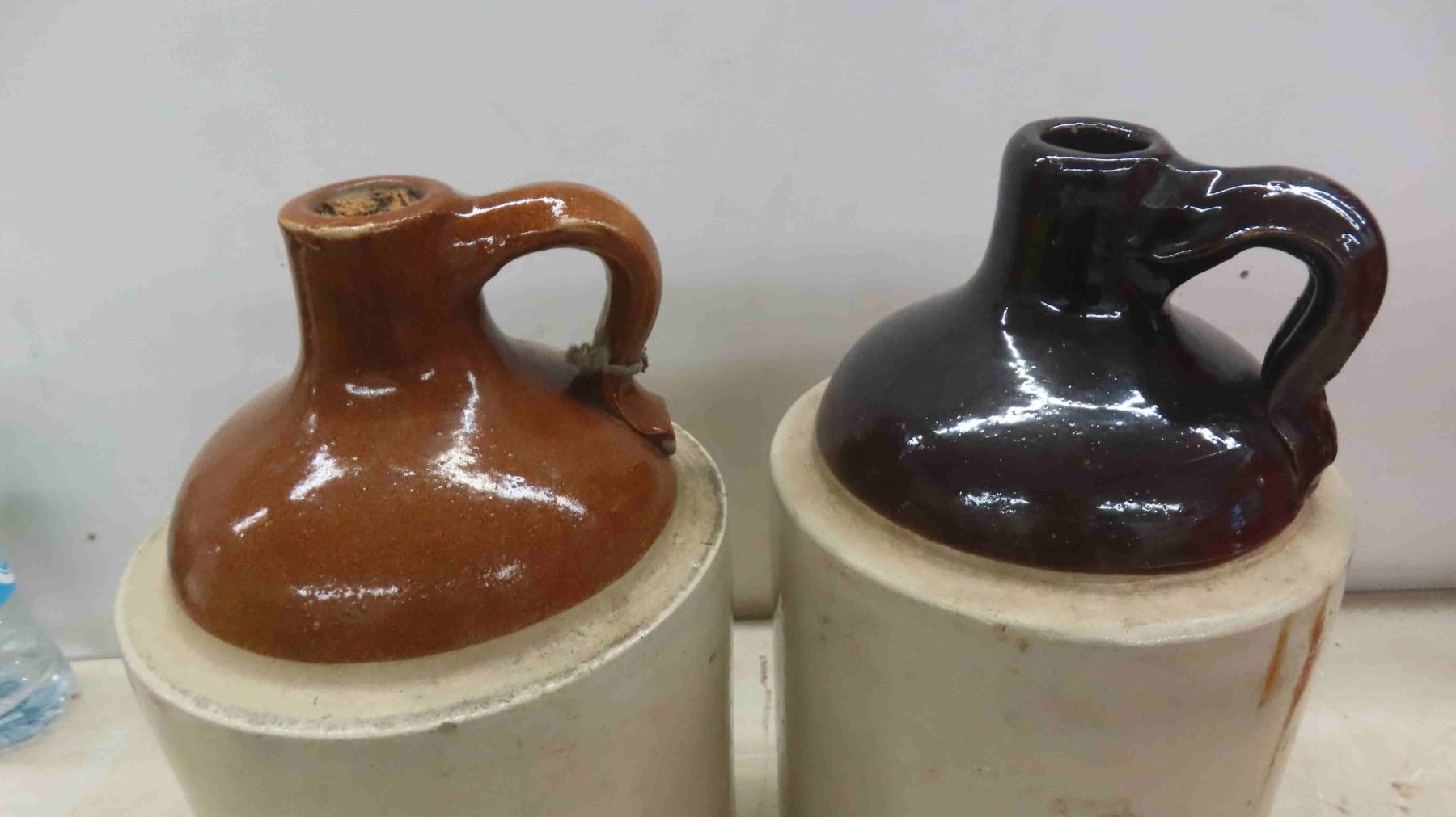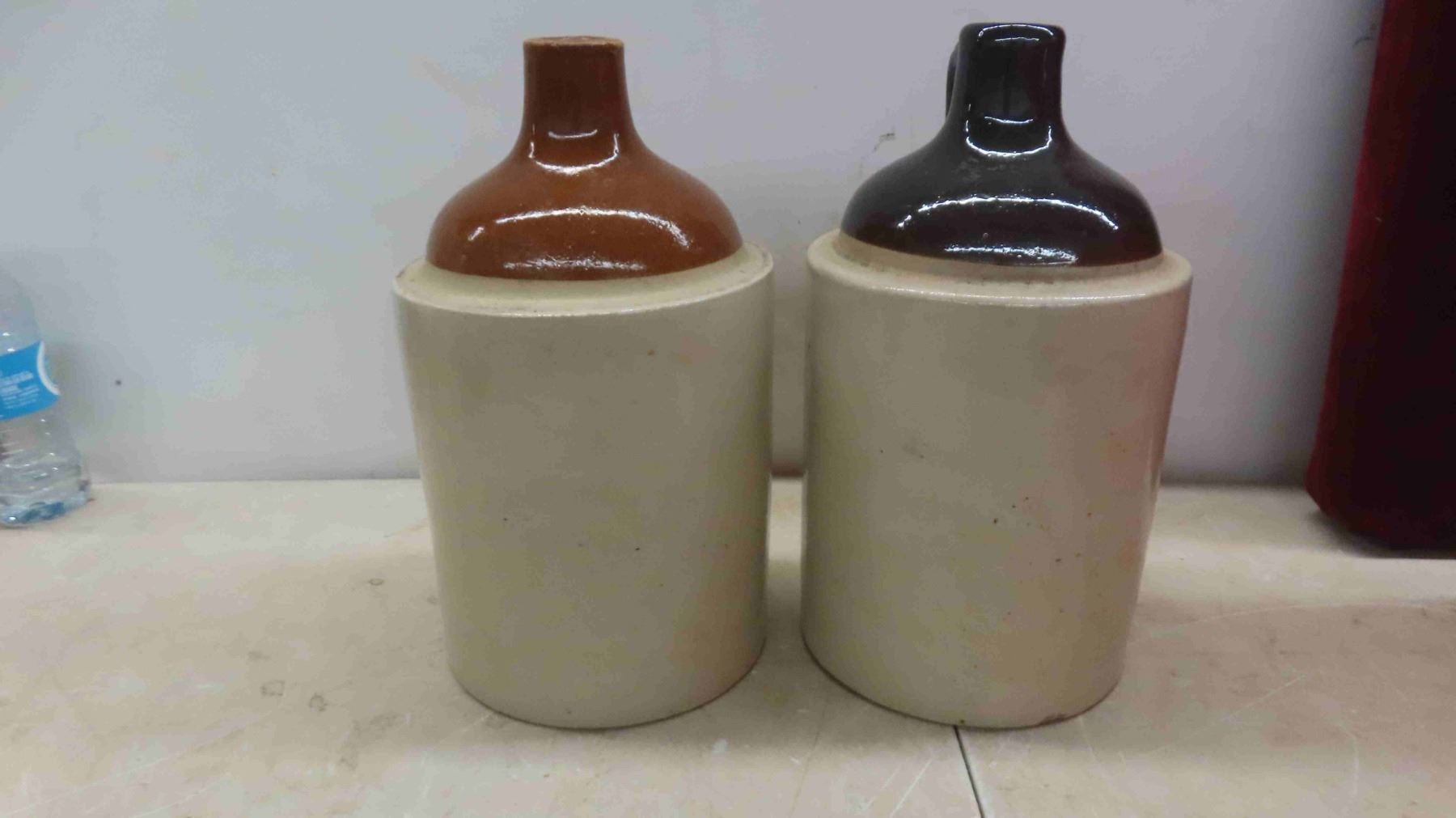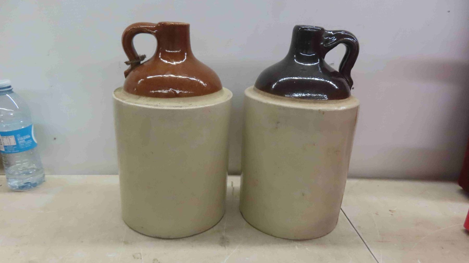2 Vintage Stoneware Jugs with a Plastic Coca Cola Case