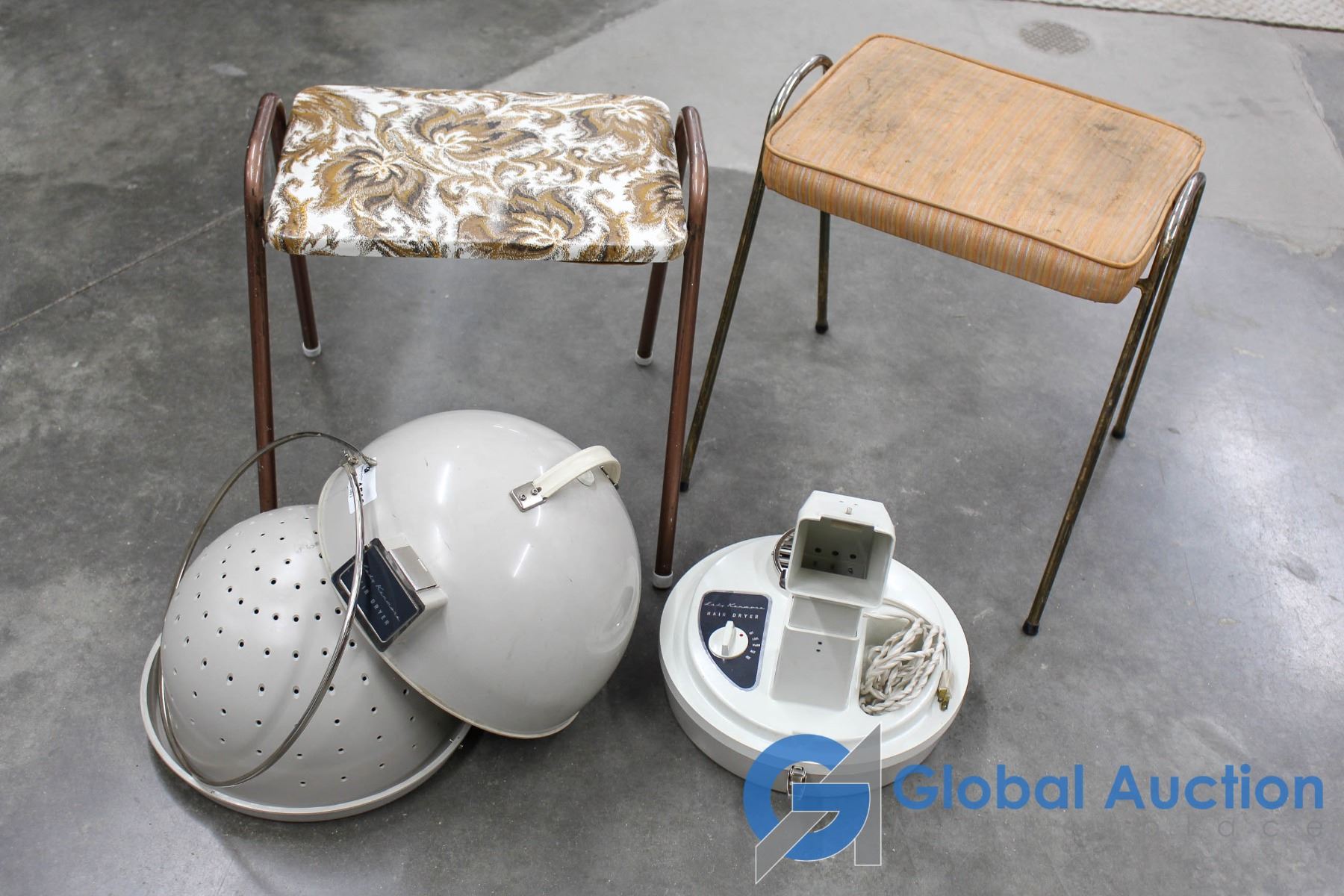 (2) Vintage Stools & Lady Kenmore Hair Dryer