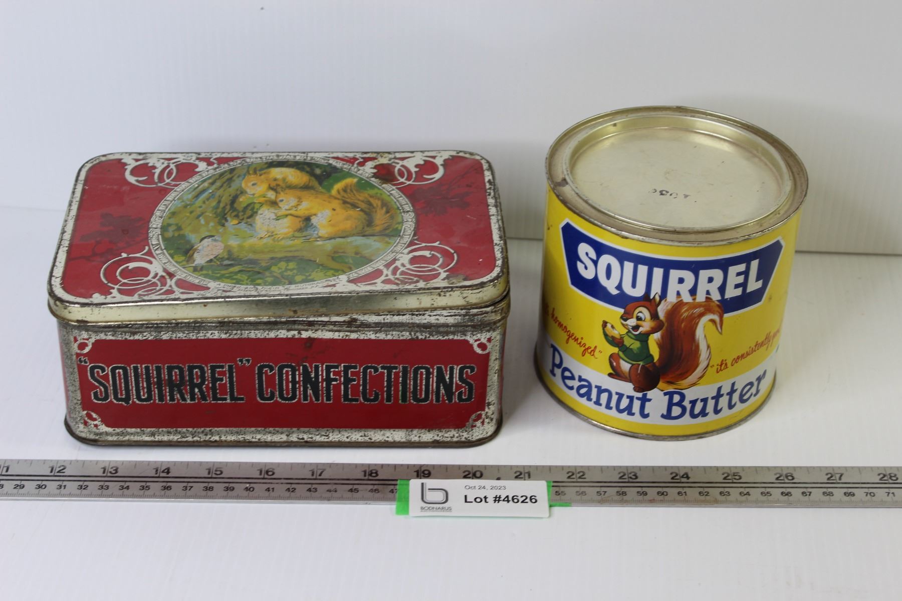 (2) Vintage Tins - Squirrel Peanut Butter - Squirrel Confections