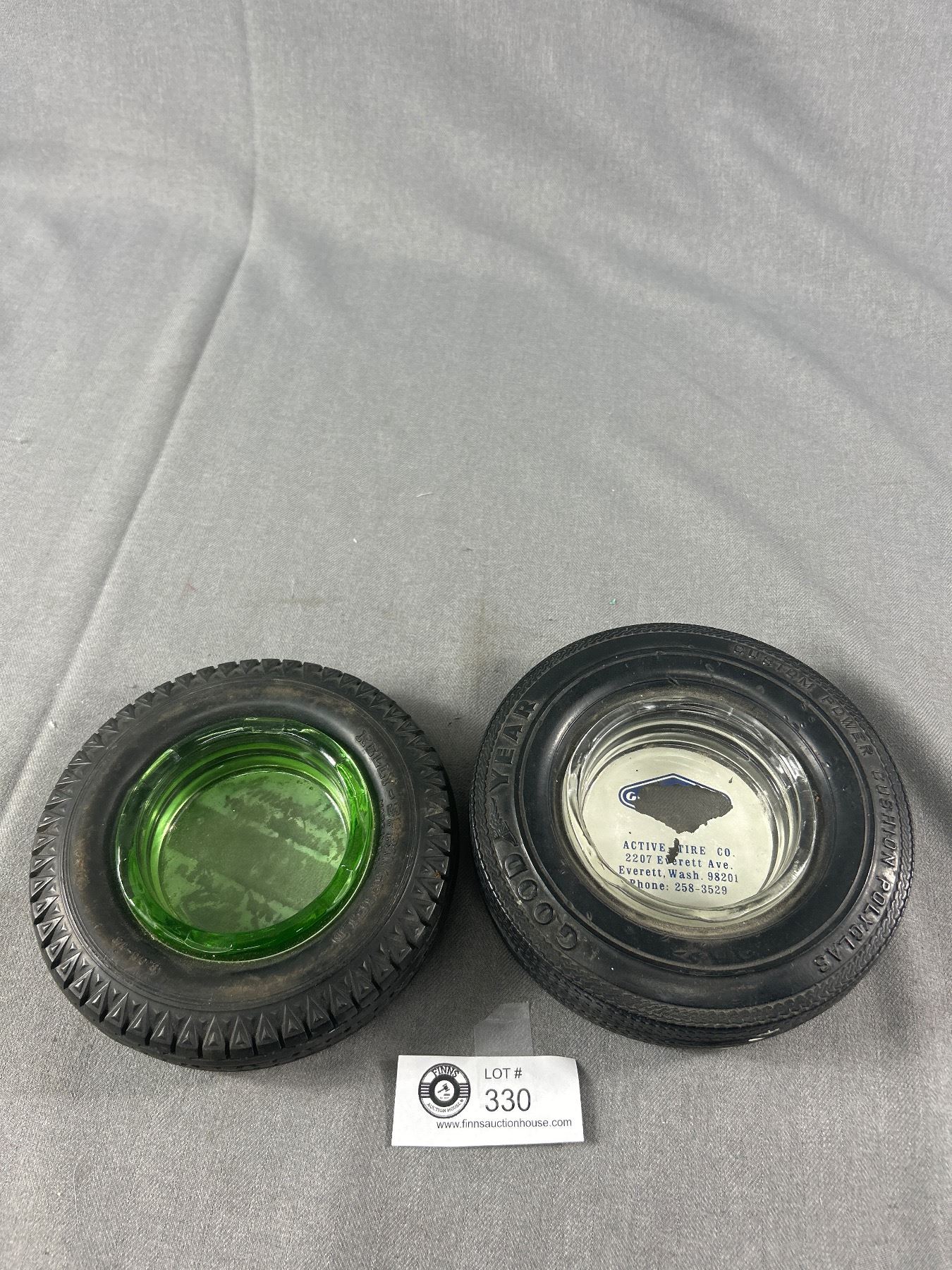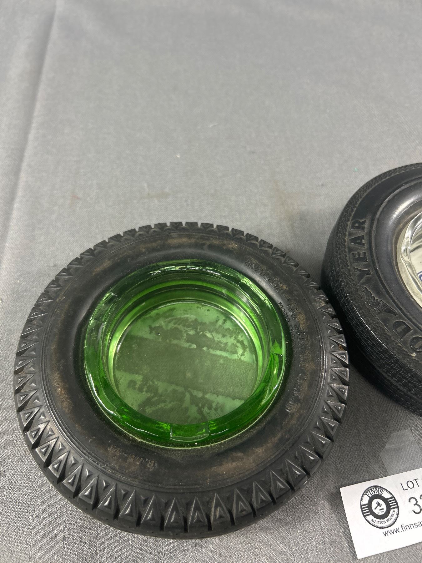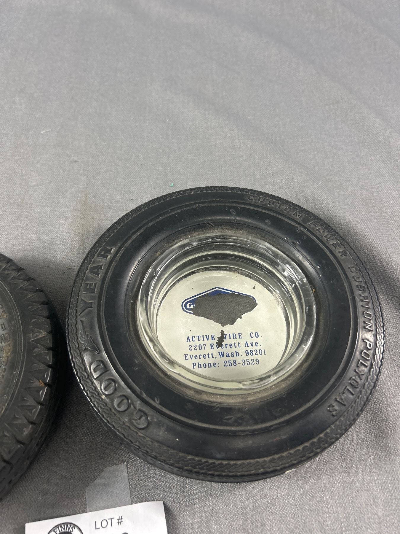 2 Vintage Tire Ashtrays - Kelly-Springfield w/ Uranium Glass Insert & GoodYear, Everett, Washington