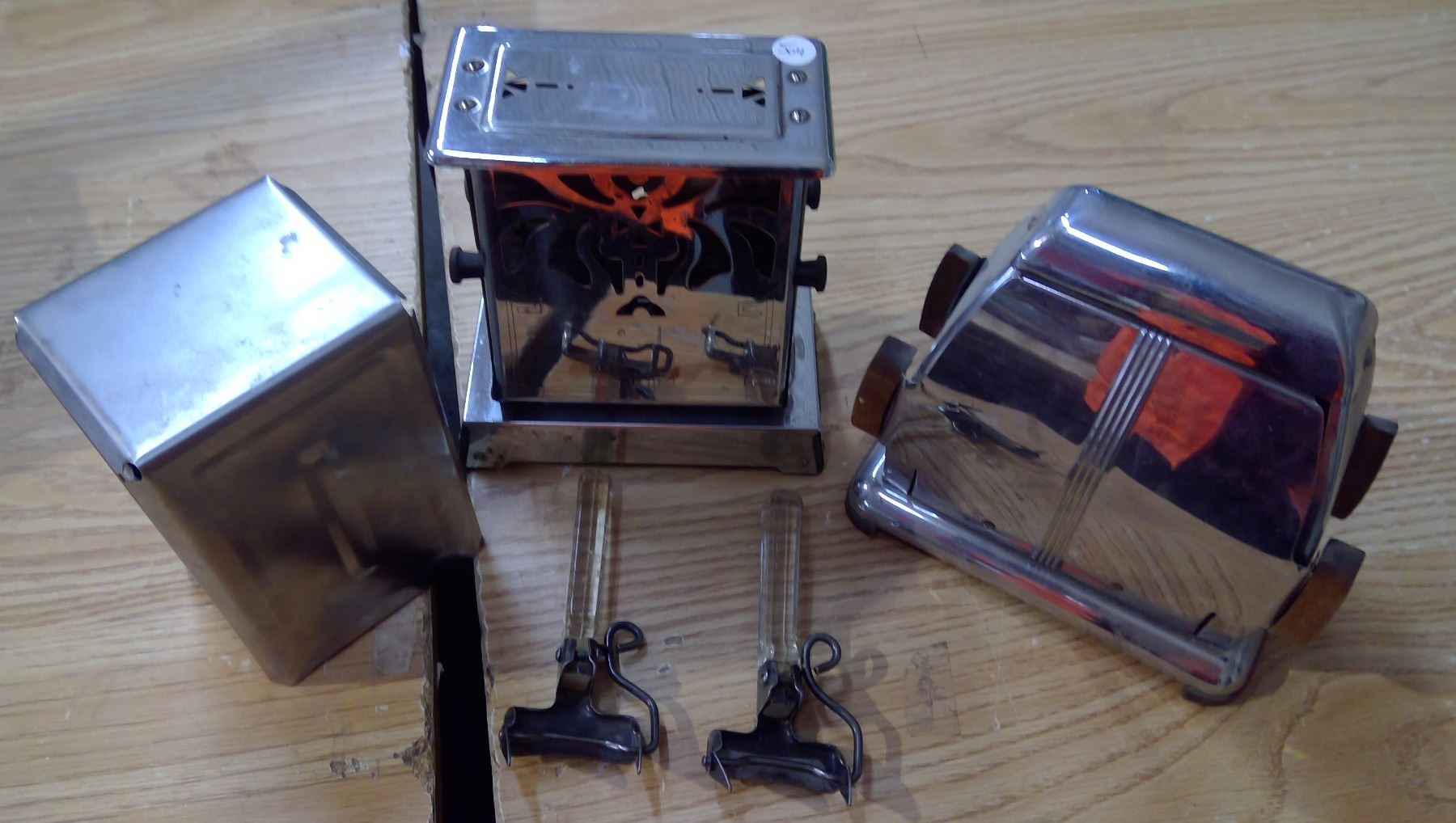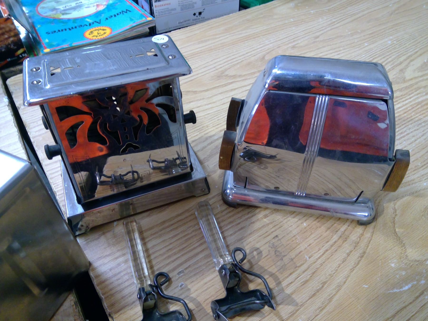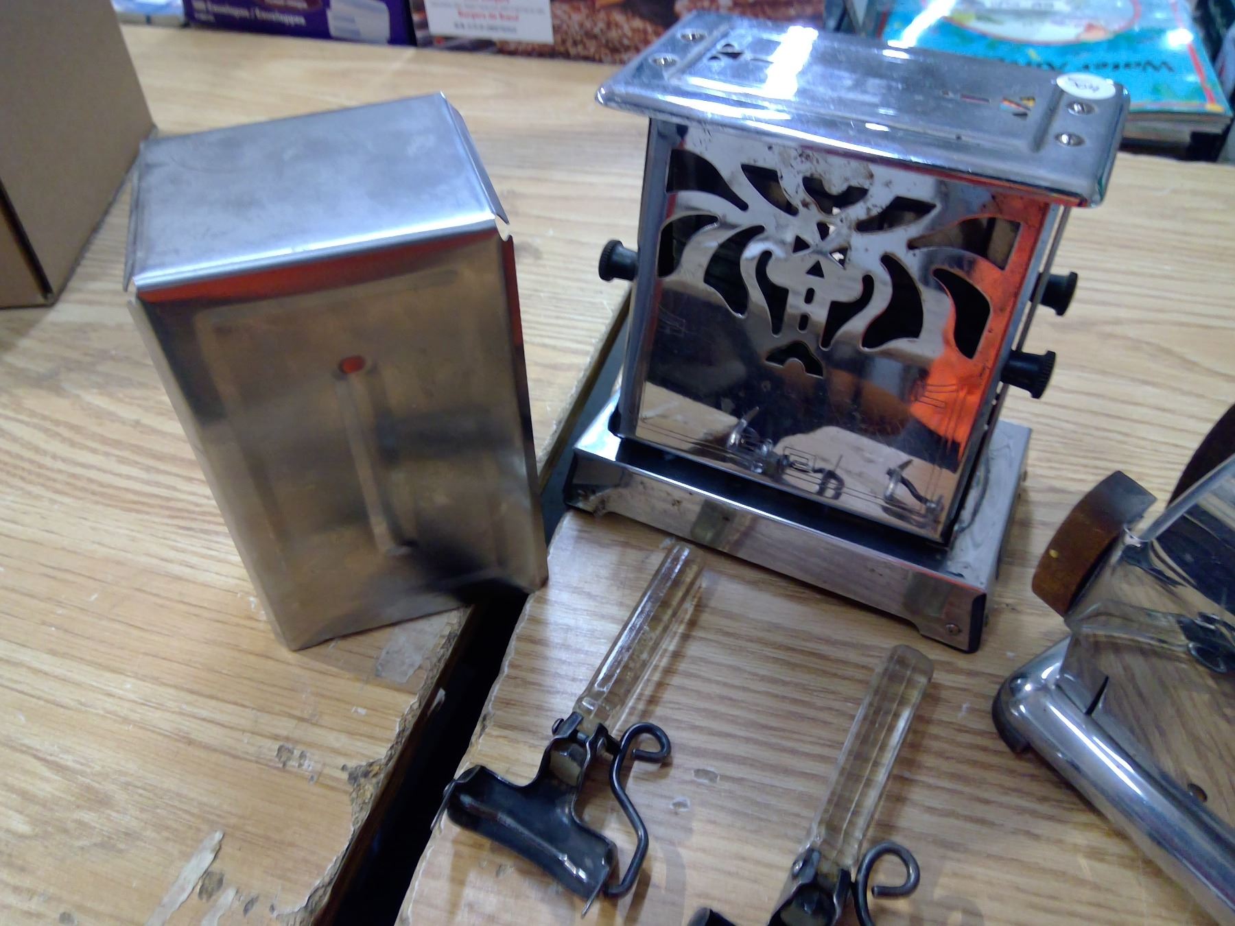 2 Vintage Toasters, Napkin Holder, 2 Pyrex Handles