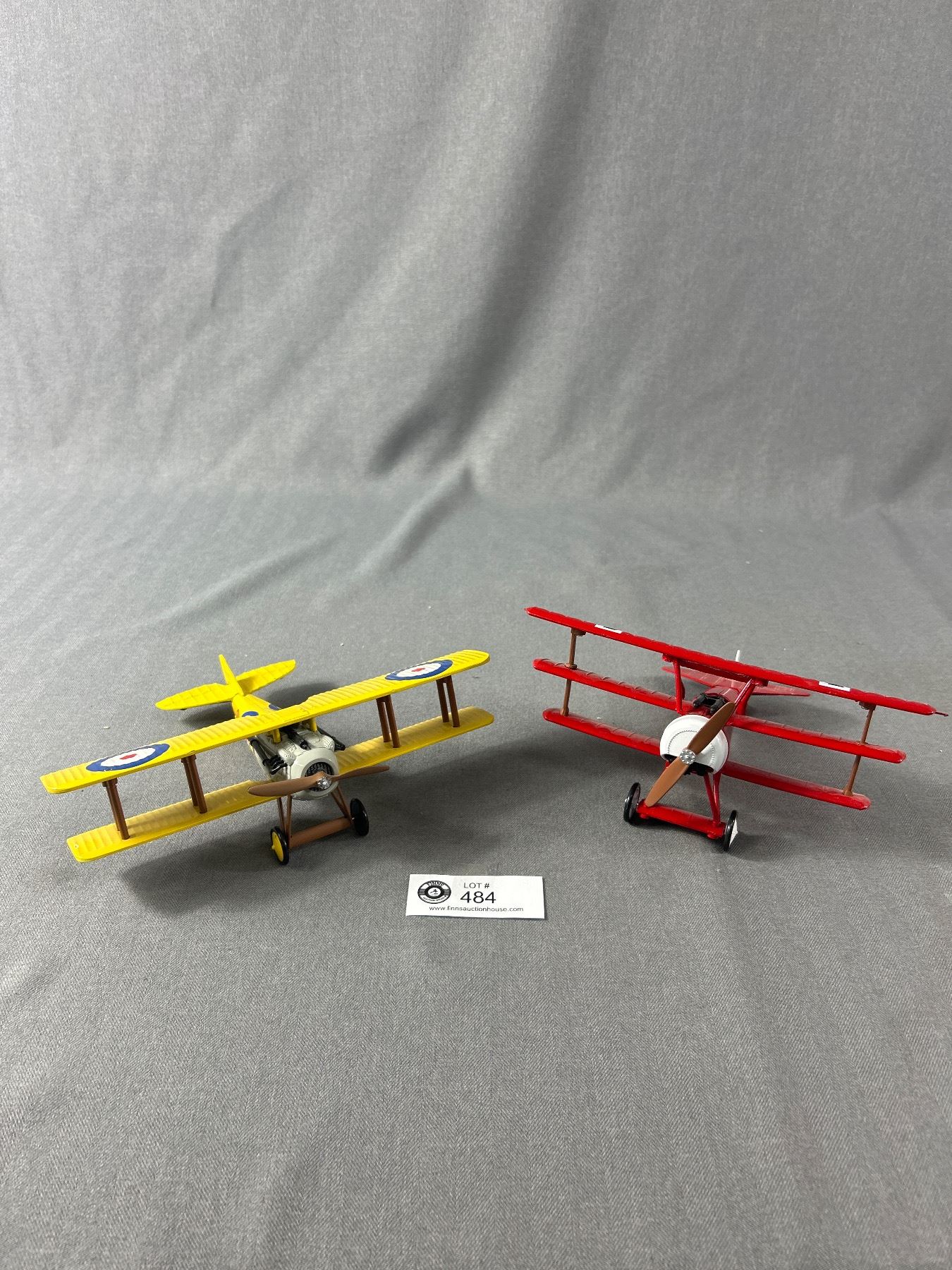 2 Vintage Toy Planes Red Baron and British byplane 1:72 scale plastic planes
