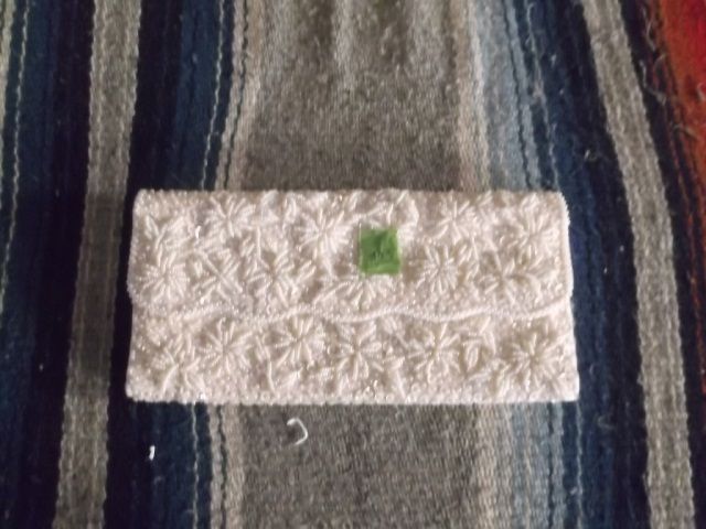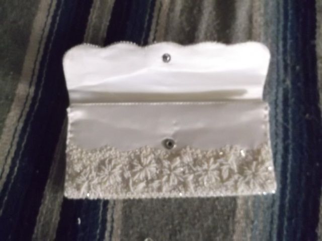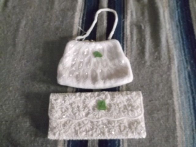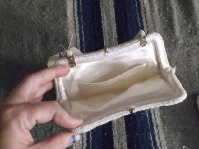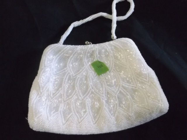 One has white pearl beads with a beaded handle approx 8" x 6" the other is a white beaded & sequined clutch that is approx. 9" long X 5 " tall tracking #110 & 103