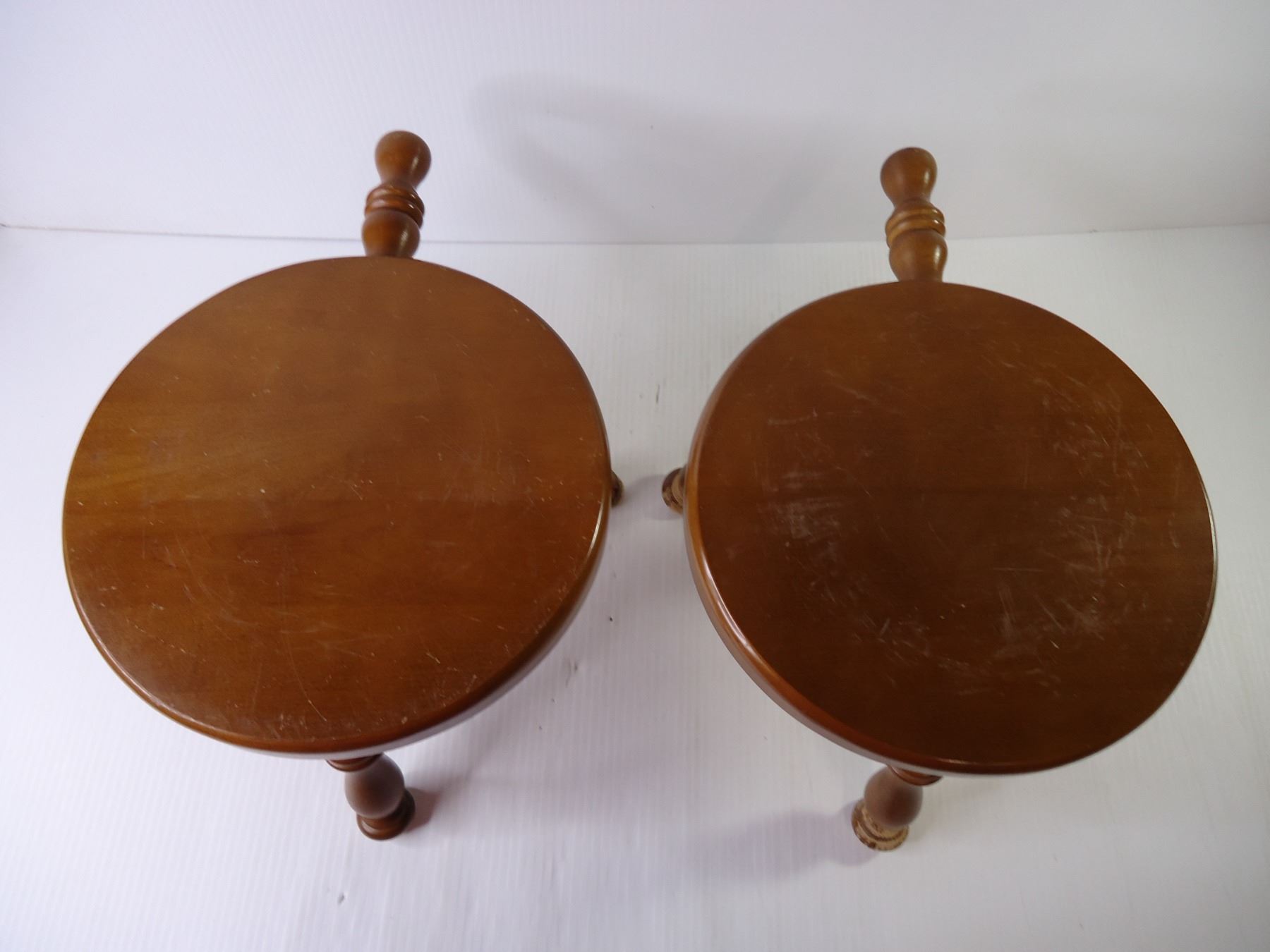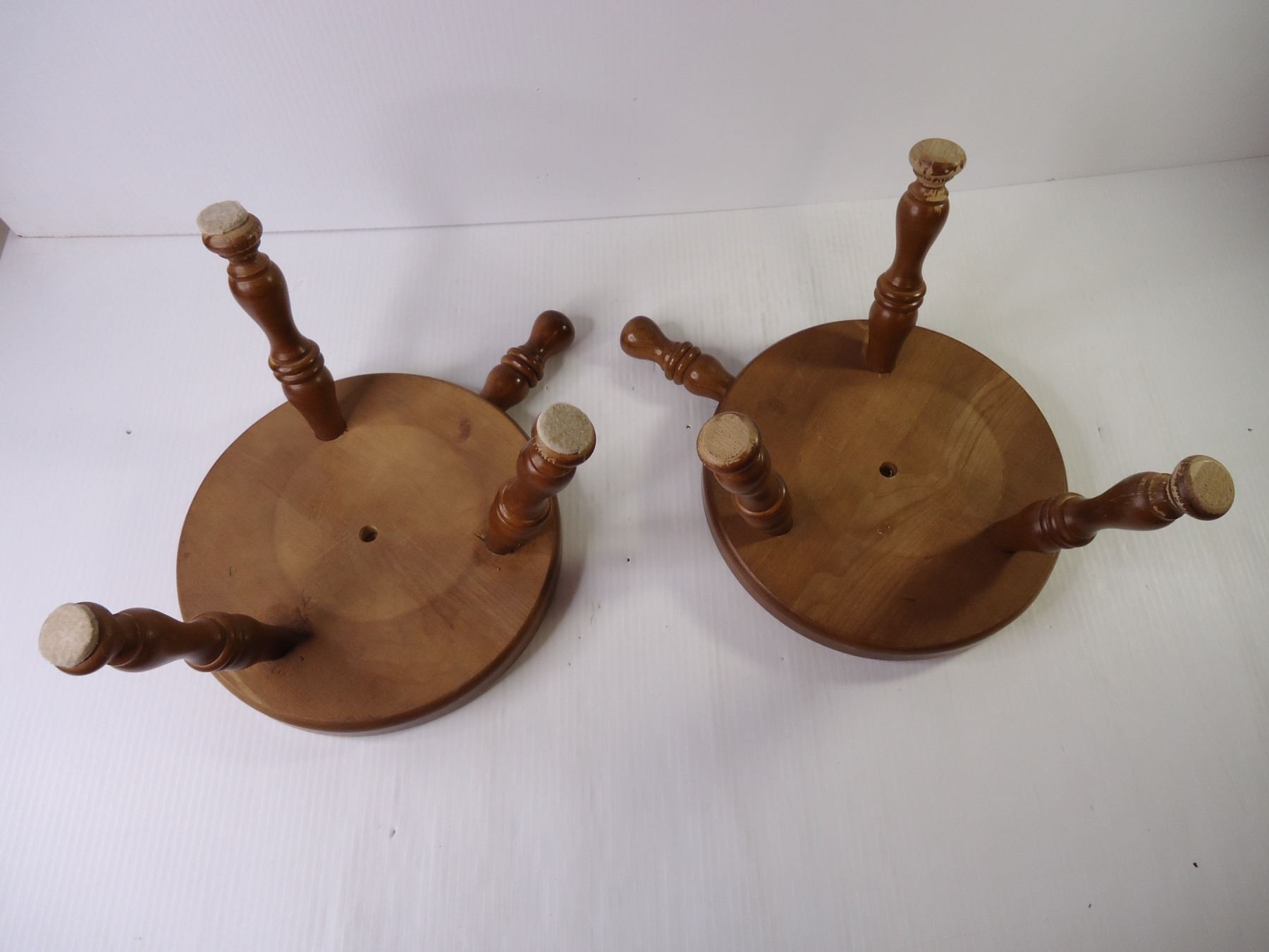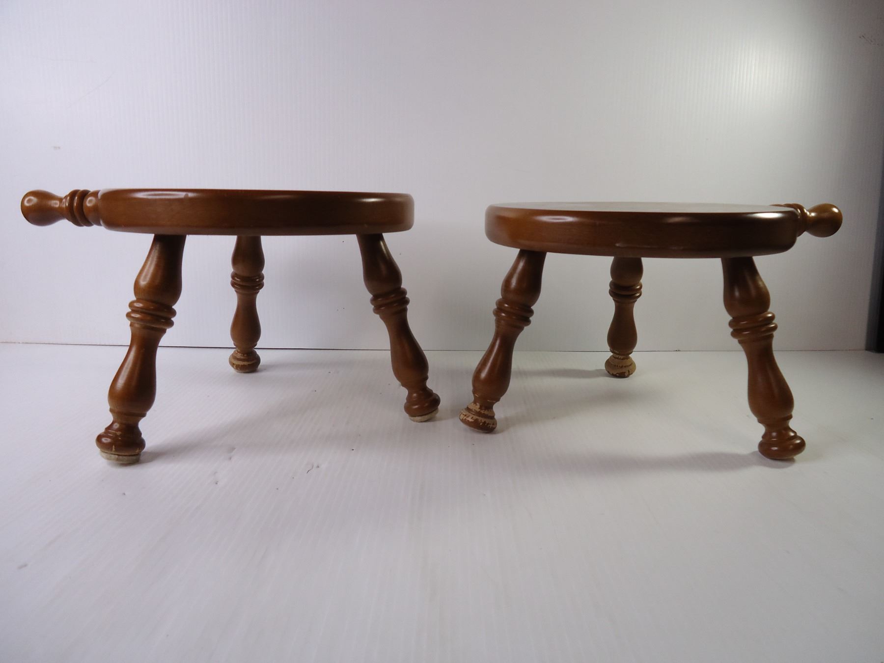 (2) Vintage Wood Milking Stools with Three Turned Legs and Handle