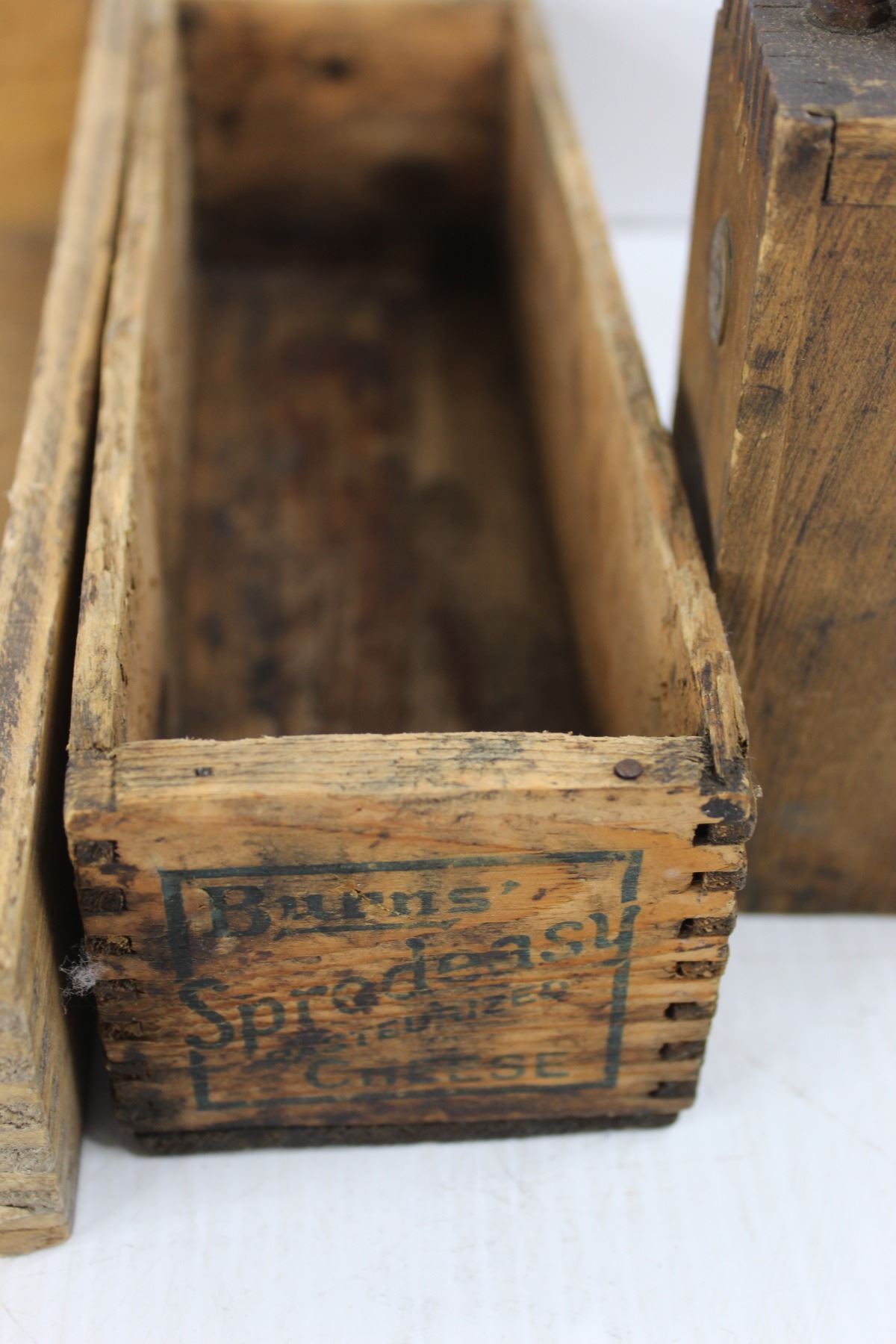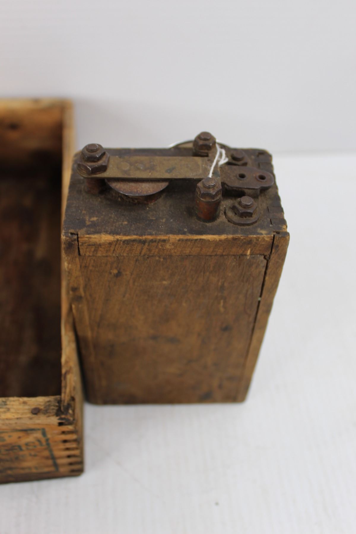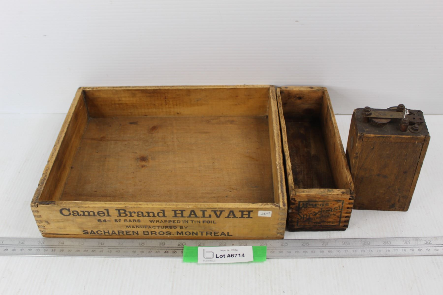 (2) Vintage Wooden Boxes, Cheese, Chocolate Bars, Vintage Ford Model T Igniting Coil