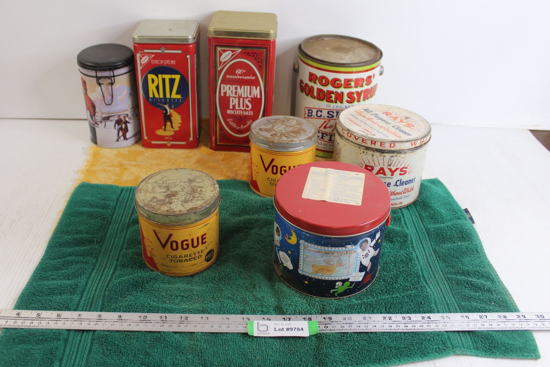 (2) Vogue Cigarette Tins, Premium Plus Tin, Ritz Tin, Assorted Tins