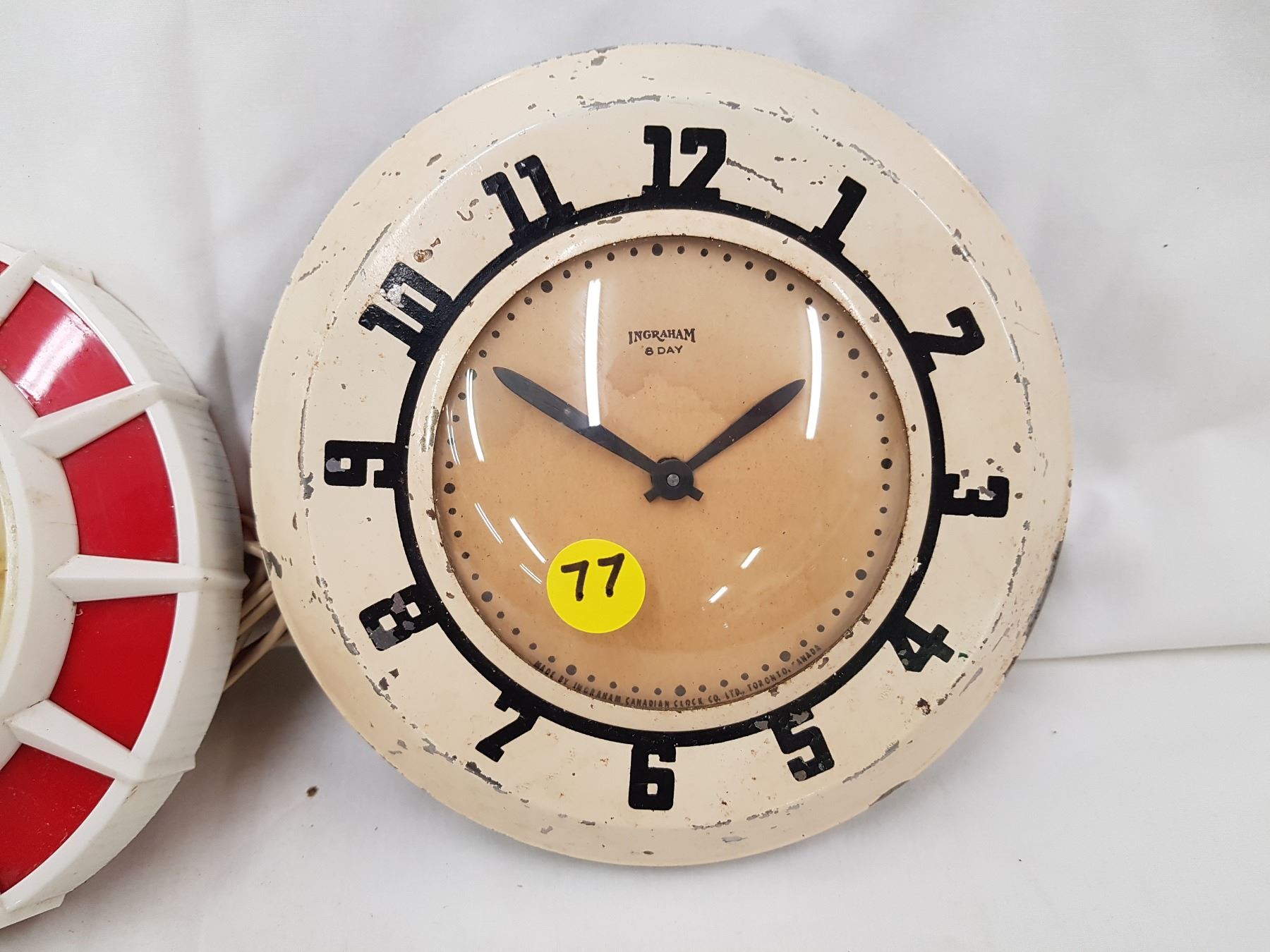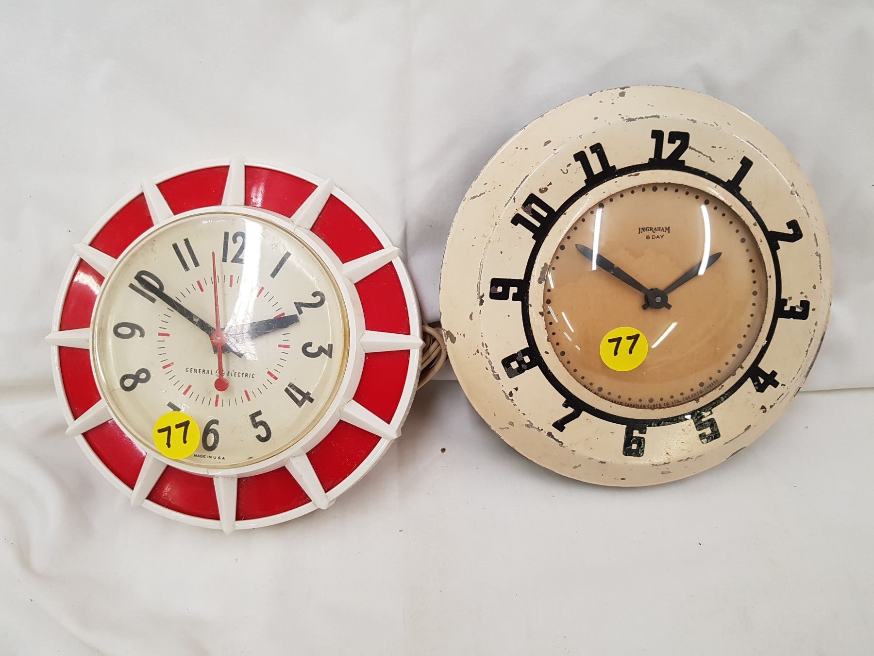 2 WALL CLOCKS (1 ELECTRIC, 1 WIND UP)