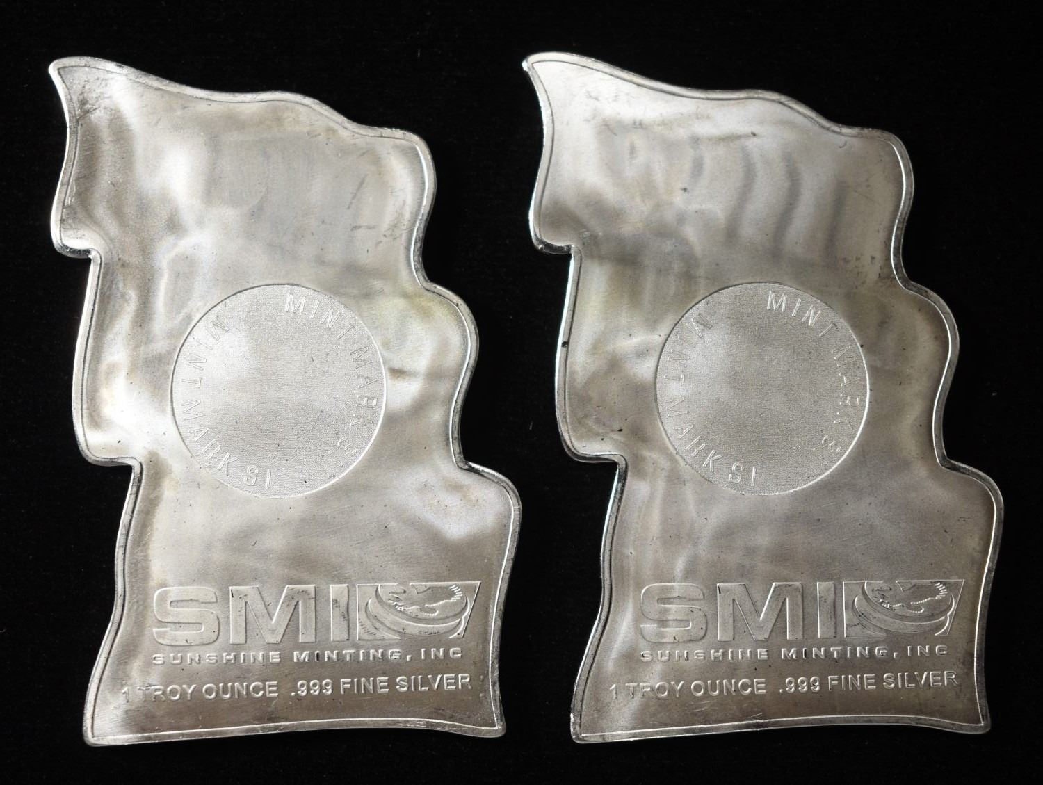 (2) WAVING FLAG 1 TROY OUNCE .999 SILVER
