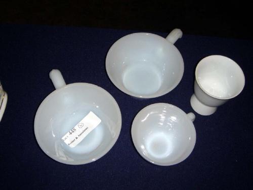 2 WHITE BOWLS, CUP & FOOTED CUP