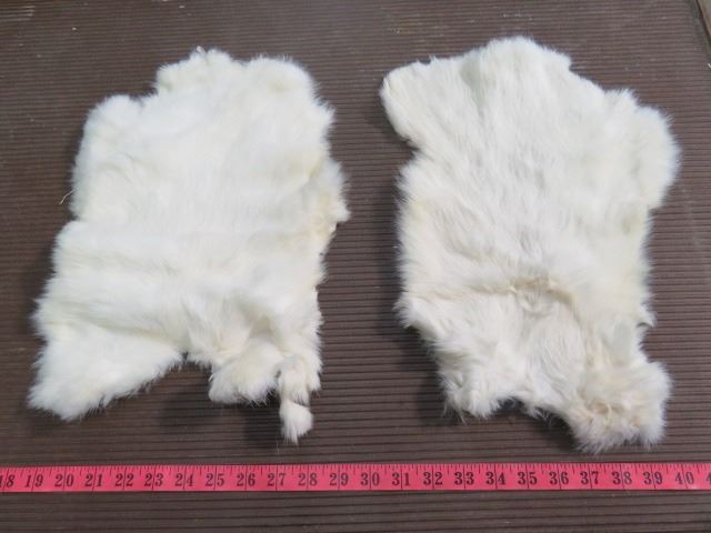 2 WHITE RABBIT PELTS (16" X 11" ---15" X 10.5")