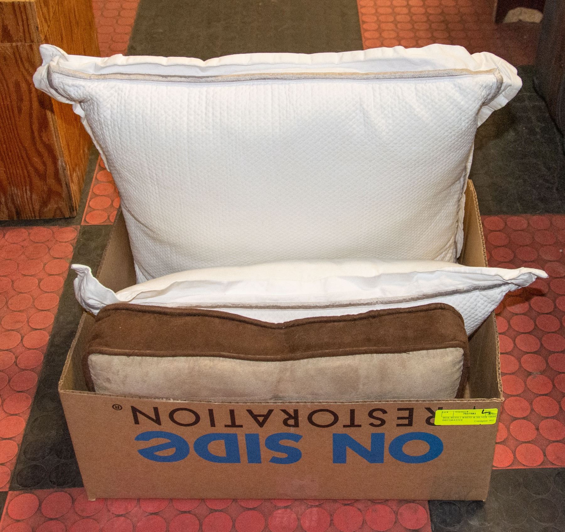 THROW PILLOWS WITH REMOVABLE/WASHABLE COVERS AND 1 SMALL RECTANGLE BROWN & BEIGE PILLOW