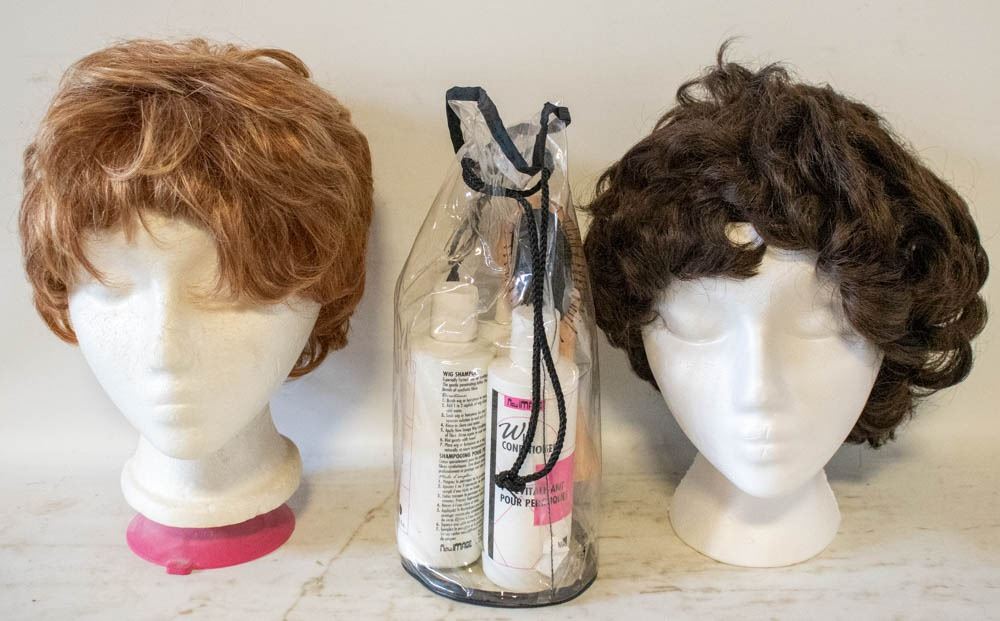 2 WIGS ON HEADS & WIG SHAMPOO & MORE