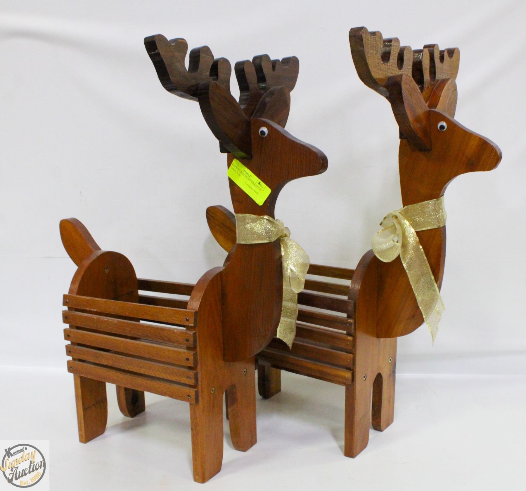 2 WOOD RAINDEER DECORATIONS 22"HIGH X 18"