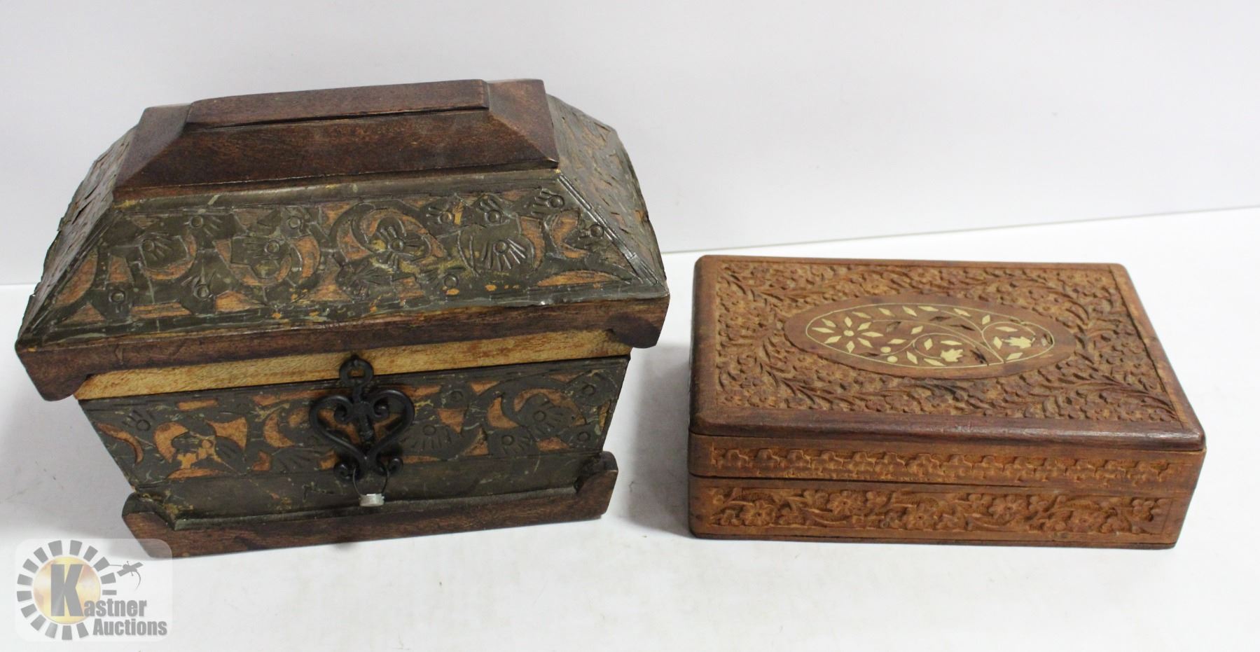 2 WOOD TRINKET BOXES INLAID PIRATE 420 STASH BOX