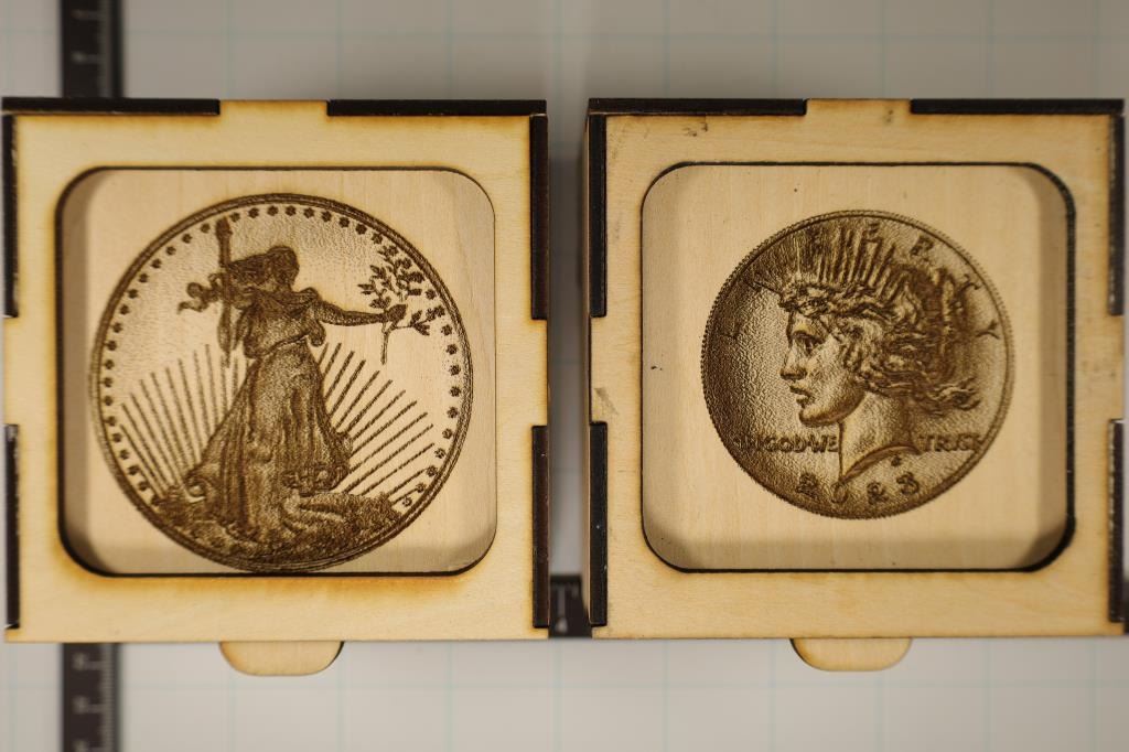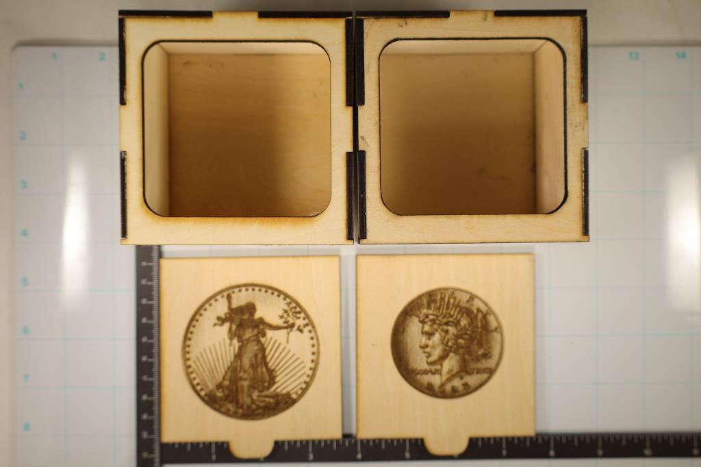 PEACE DOLLAR DESIGN. 4" X 4" X 2" WITH SLIDING LID TOP