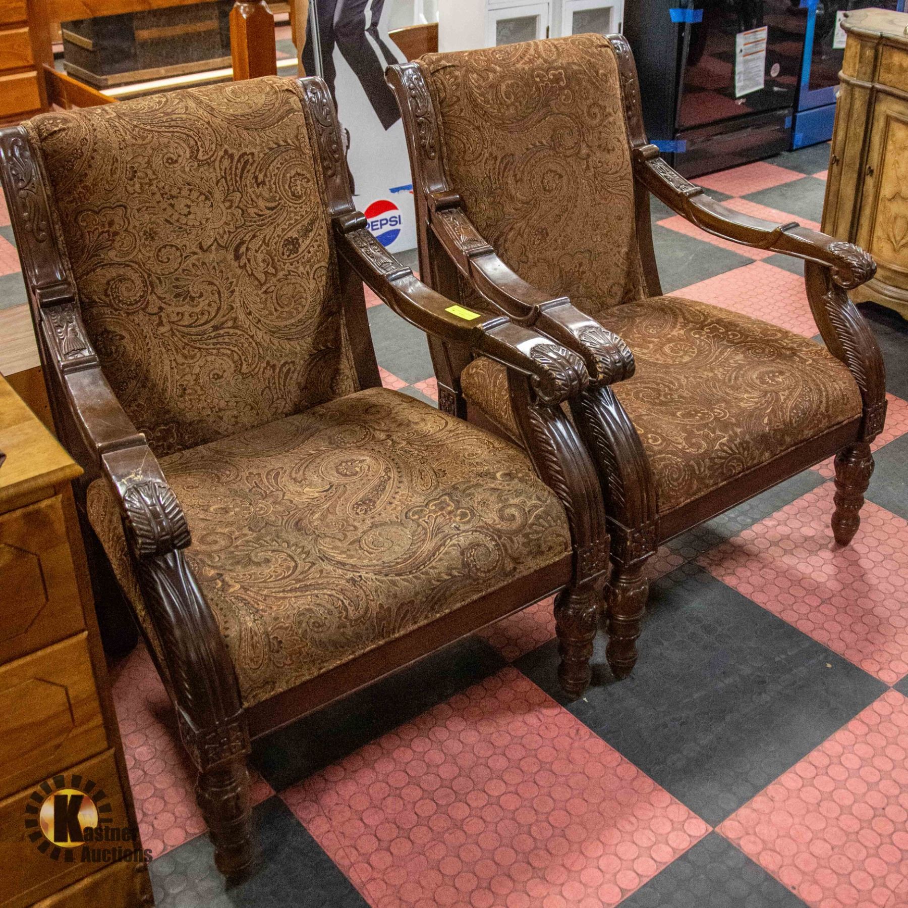 2 WOODEN FRAMED THRONE STYLE CHAIRS